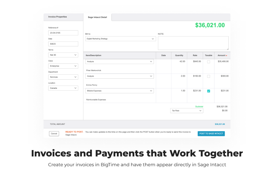Streamline project accounting, accounts receivable, and billing between Sage Intacct and BigTime
