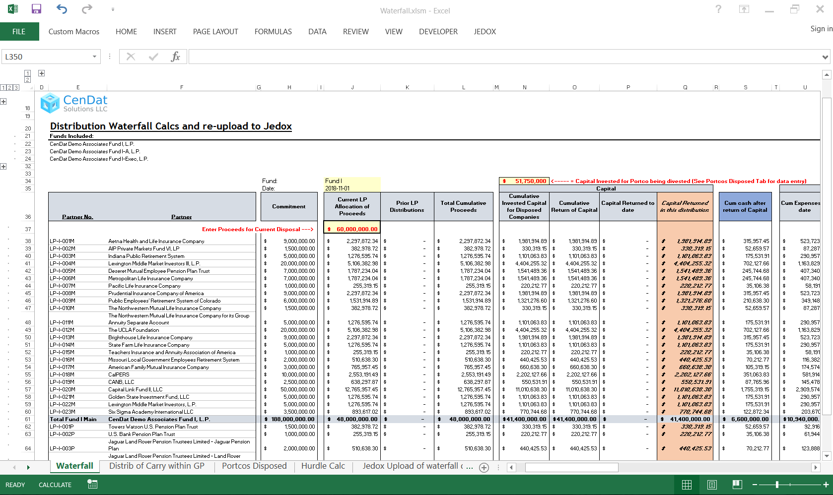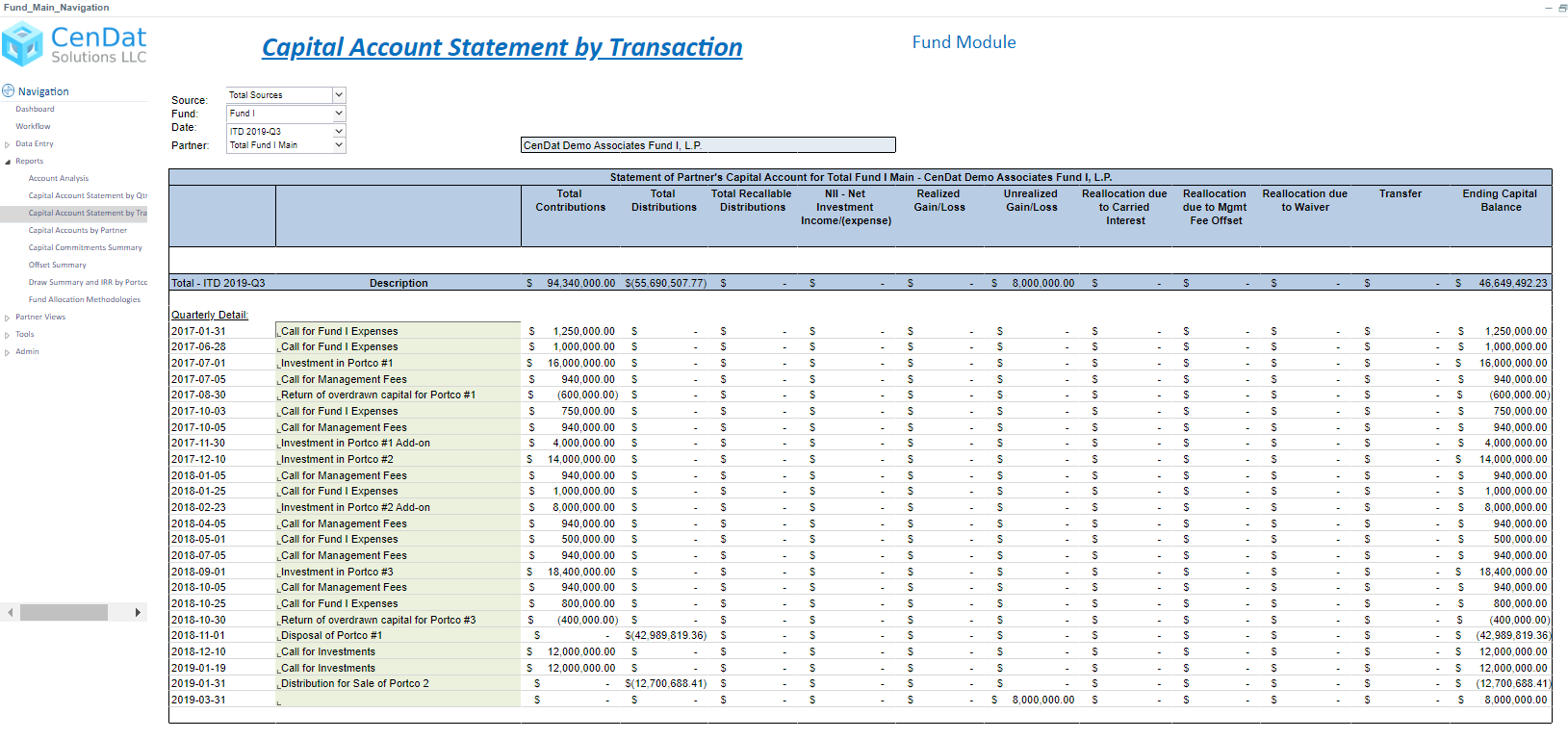• Variety of pre-built reports, including: waterfalls, hurdle calculations, performance metrics, investor level capital account statements, and more…