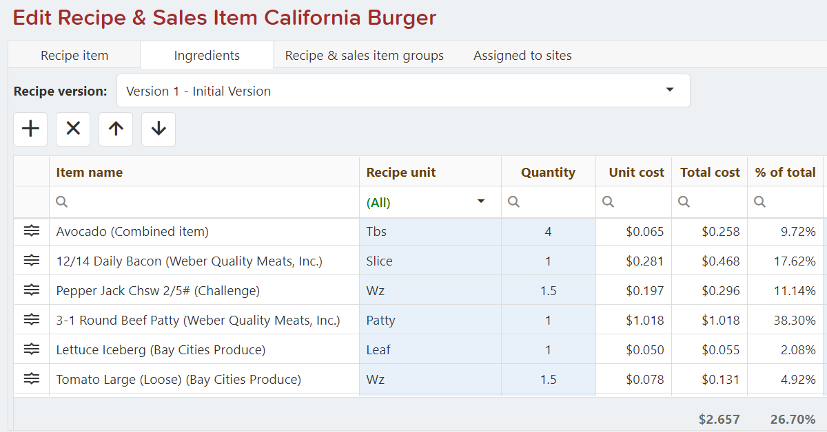 Recipe Management: To make recipe management easier, COGS-Well automatically configures recipe units and their factors for inventory items. Every ingredient will have multiple units of measure. We have also added a recipe unit library that automatically scales recipe units (grams, cups, pounds, each, liters, etc.) so one ingredient can be portioned using different recipe units in different recipes.