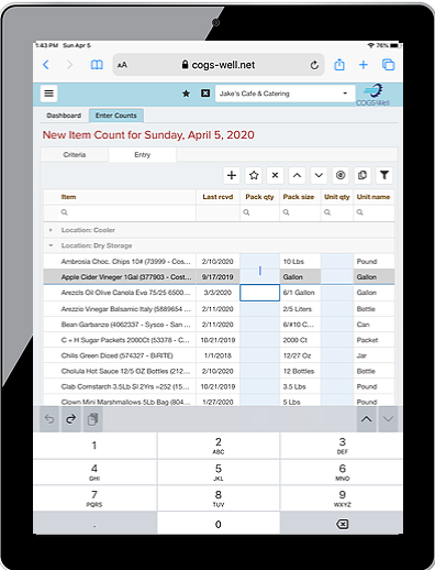 COGS-Well customers consistently report their happiness about how much faster and easier COGS-Well is to set up and use than their old inventory system. The “COGS” in COGS-Well stands for "Cost of Goods Sold". We do “COGS well” by making inventory control and recipe management much easier and more efficient.