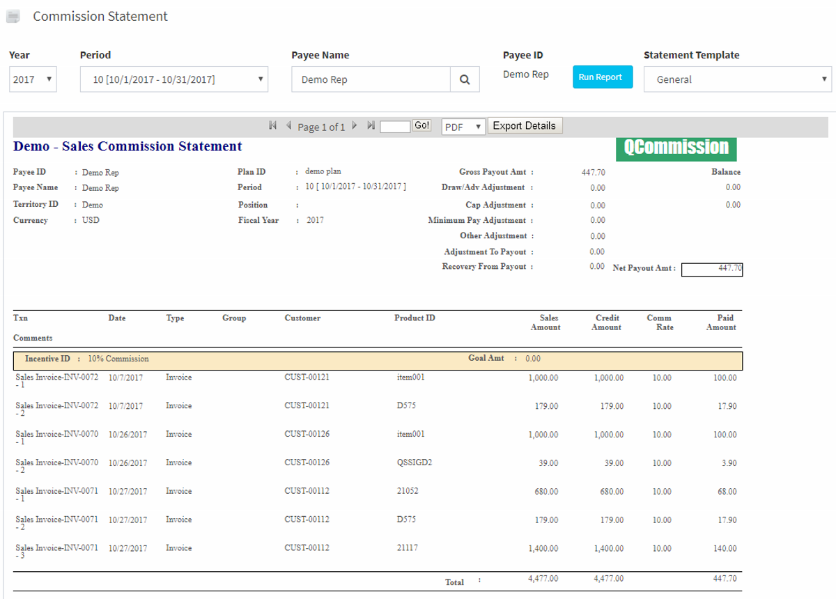 QCommission maintains all the data involved in calculating commissions. This allows the production of clear and complete commission statements to the field. More transparent communication means less confusion among the salespeople and less queries and problem solving effort regarding commission issues.
