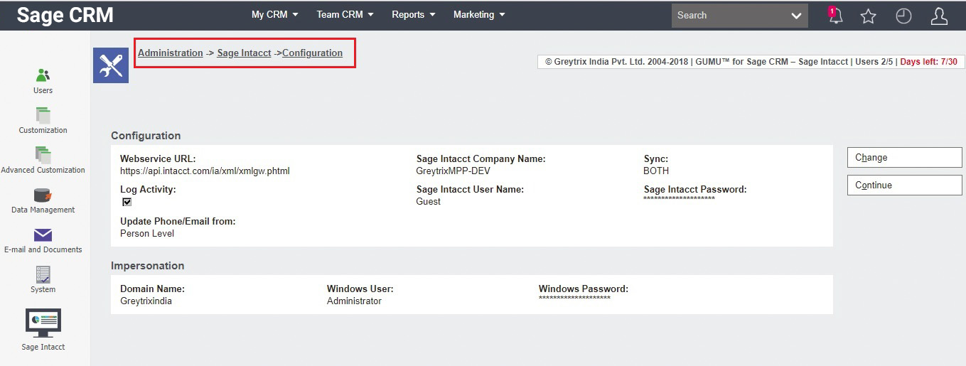 Integration tool from Greytrix for Sage CRM and Sage Intacct system.
