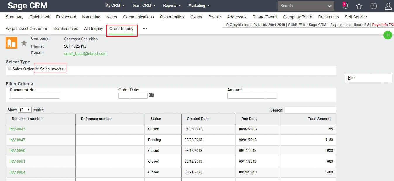 Greytrix offers GUMU™ for Sage CRM with Sage Intacct Integration – a comprehensive integration system, specially designed to satisfy all your business priorities. It delivers seamless, real-time integration that plays a pivotal role in unlocking the potential of enterprise data to make smarter and faster business decisions along with organization able to achieve its business goals with enhanced customer experience using Sage CRM.