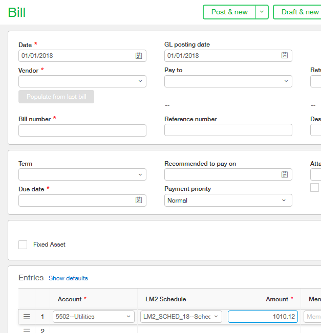 This product allows your Sage Intacct users to tag AP bills, AR invoices, and expense report entries, with specific defaults or overrides to track against any of the following LM-2 schedules:
