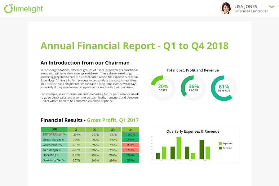 Limelight seamlessly integrates with Sage Intacct to provide real-time financial reporting, automated variance analysis, and interactive dashboards. Whether you need presentation-ready financial statements, ad-hoc reports, variance explanations, or a book of reports, Limelight delivers comprehensive reporting in just a few clicks.