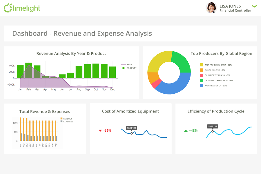 With Limelight, and Sage Intacct, you can view and analyze reports in real time, drill down to transactional details and provide information via narratives that managers can easily understand and use to make informed decisions using data from Sage Intacct. Our self-service reporting empowers users to create their own reports, dashboards and ad-hoc queries, which in turn allows for profitable decision making based on key figures and trends.