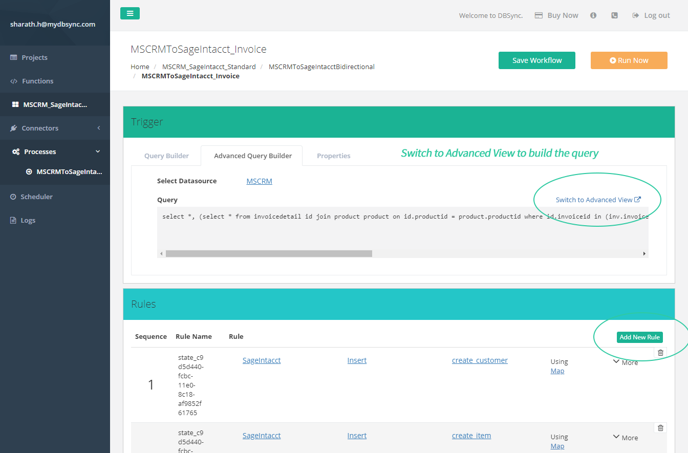 • Start with pre-built workflow and grow with customization. With DBSync you're able to create on-demand, scalable integration workflows with virtually any data point, ERP, database or your favorite eCommerce applications.