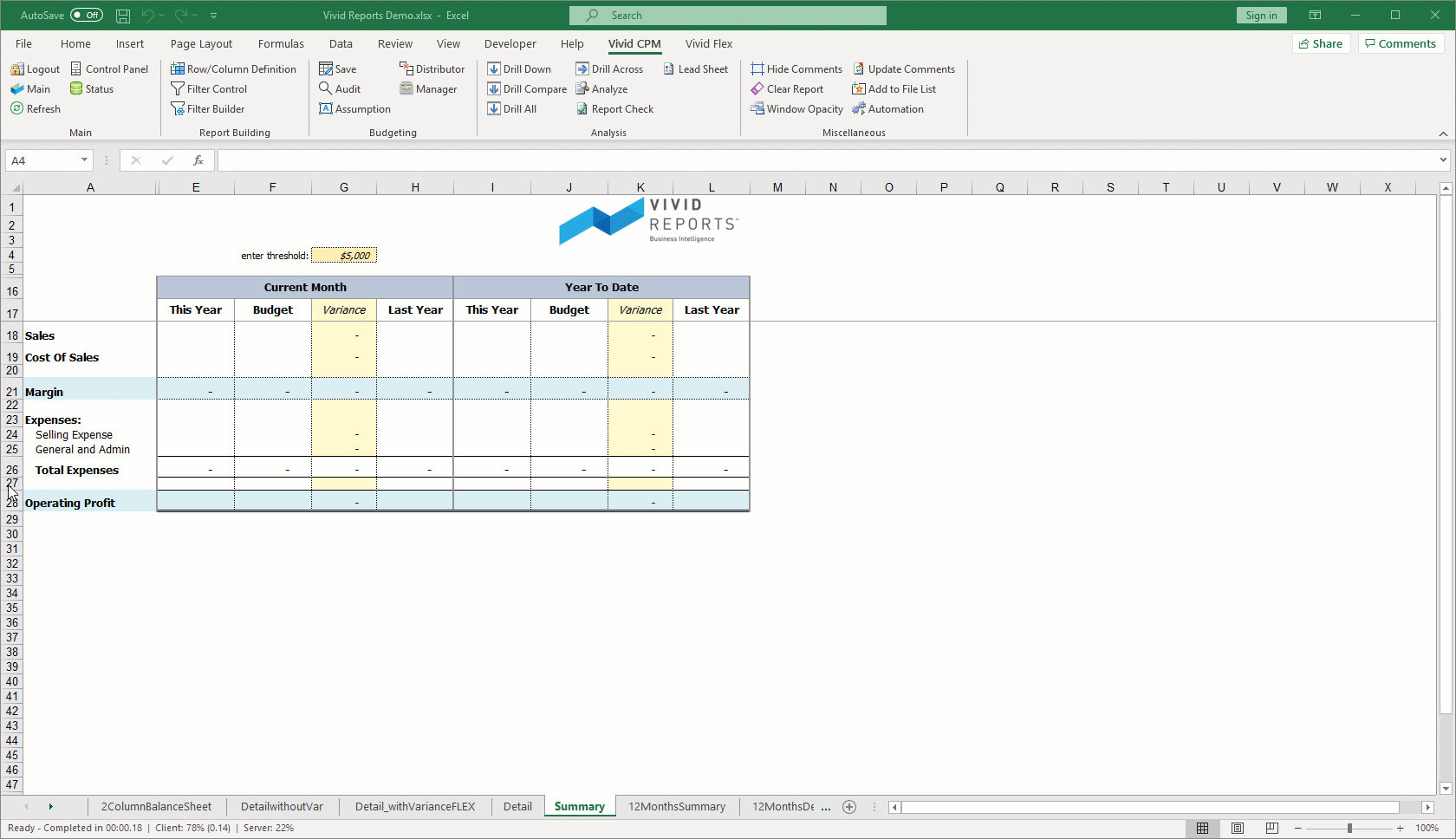 Vivid Reports provides CPM (Corporate Performance Management) and BI (Business Intelligence) software for SAGE Intacct customers. If you require advanced financial reporting, operational reporting, budgeting, and forecasting look no further than Vivid Reports.