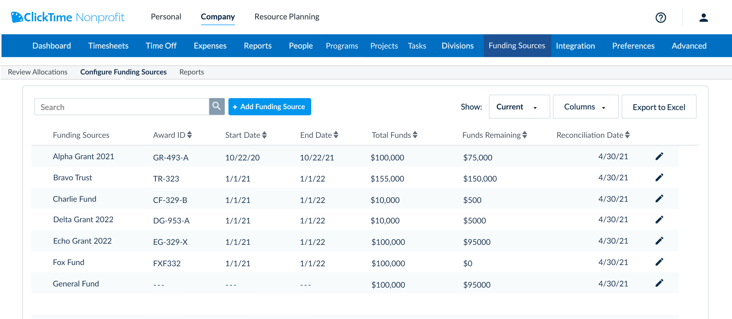 Using this integration also requires that you purchase Sage Intacct Projects Module and ClickTime Enterprise for NonProfits.