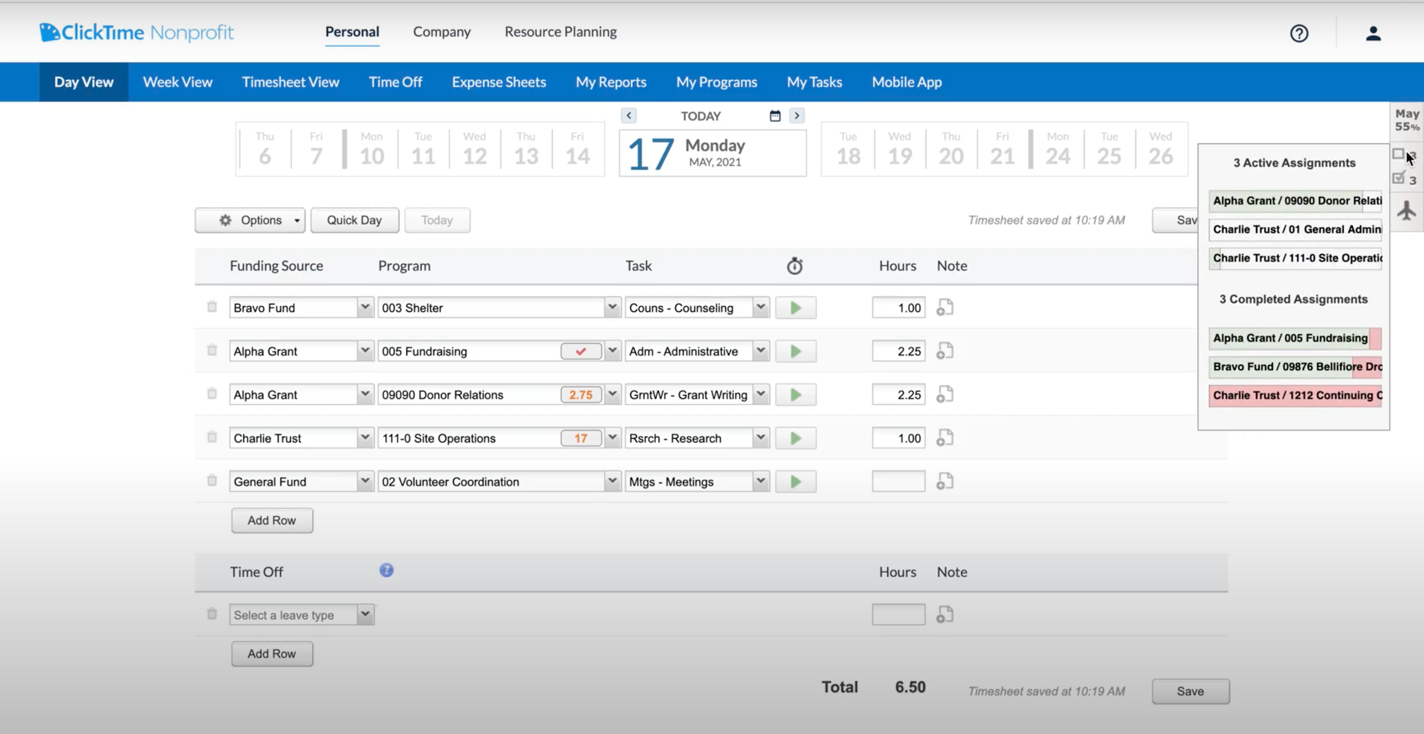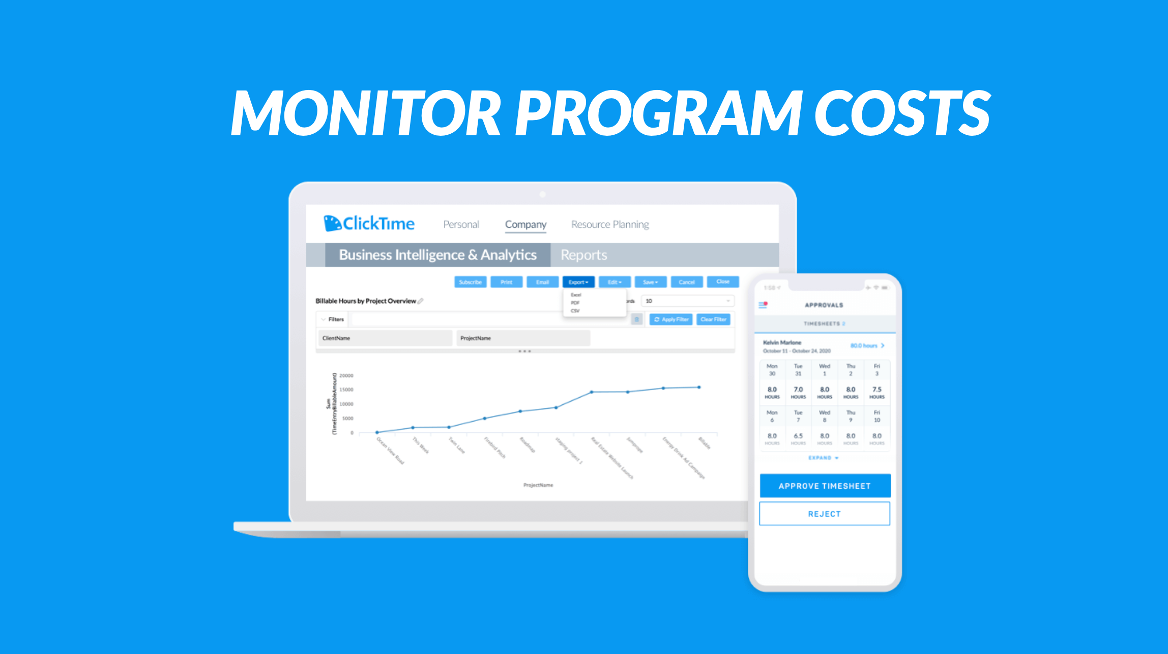 Organizations use ClickTime to plan resources and budgets monthly, surfacing monthly time goals to employees directly in their timesheets, and enabling more intelligent decisions about where to spend time.