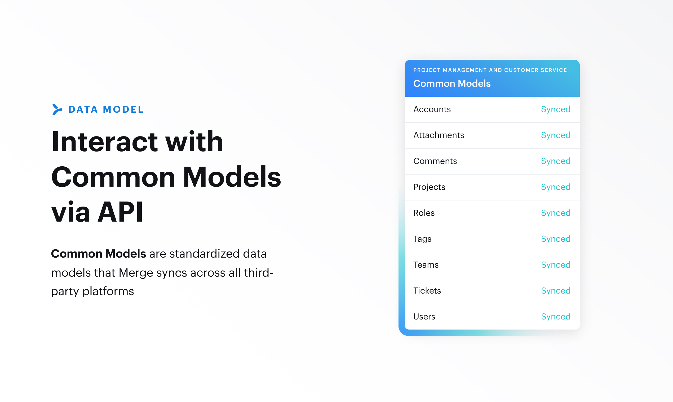 • One data model: "Common Models" provide normalized, constantly synced data for each category of integrations.