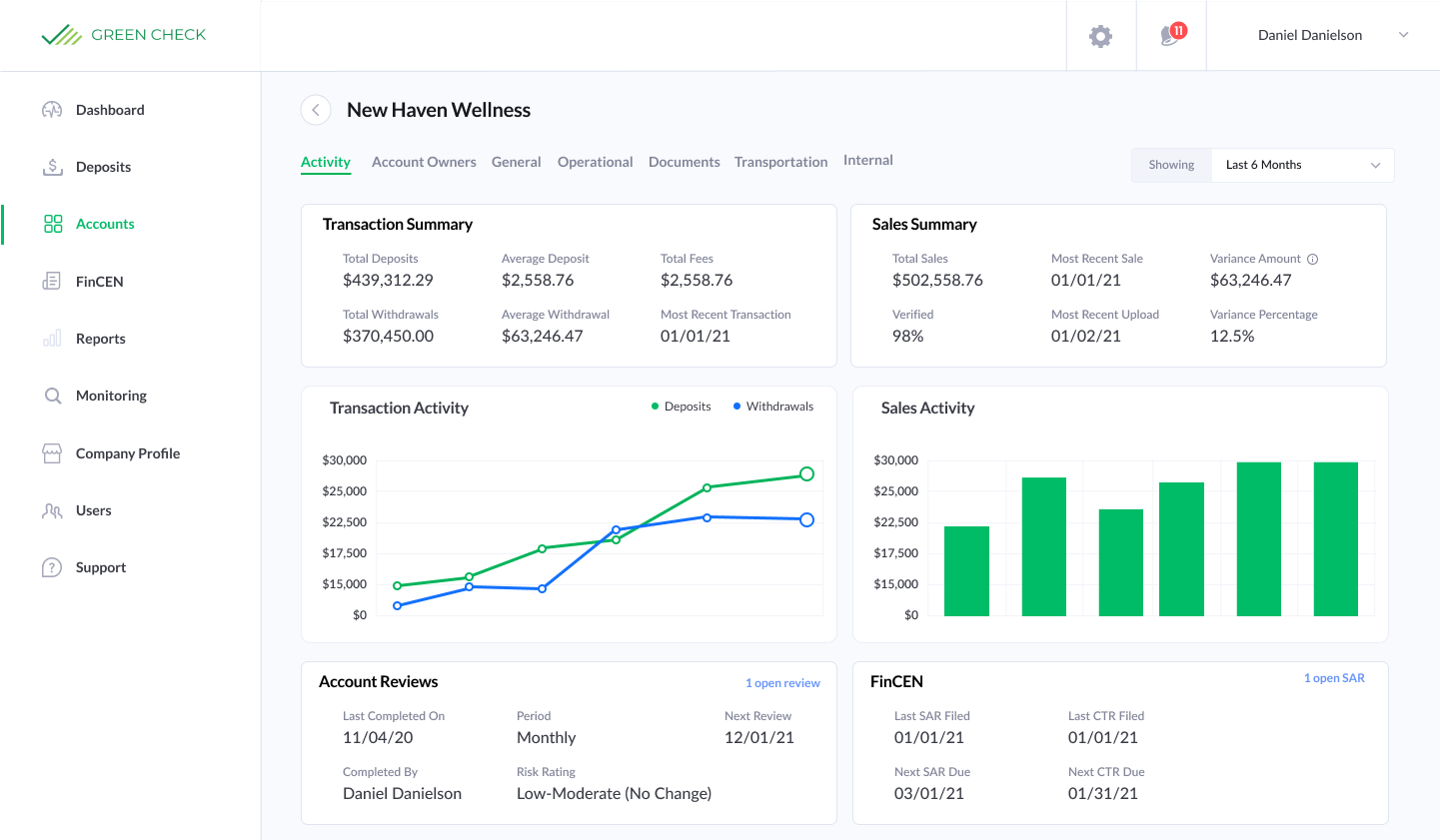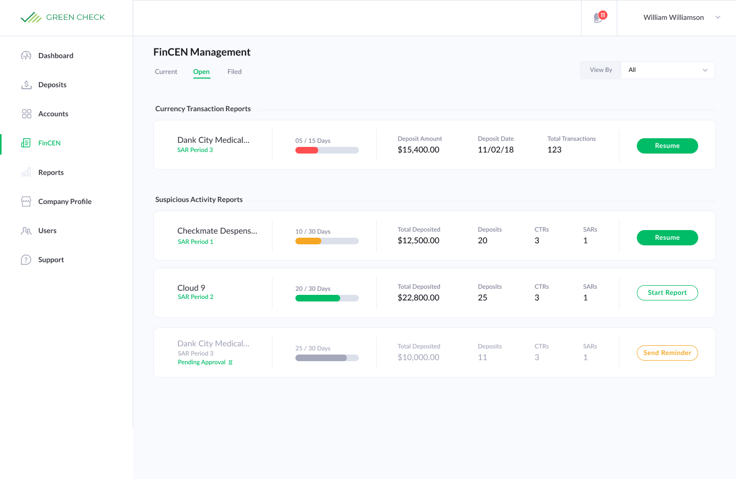 Green Check provides a compliance platform that connects legal cannabis businesses with financial institutions that want to serve them, and automates the ongoing reporting and oversight processes associated with cannabis banking activities.