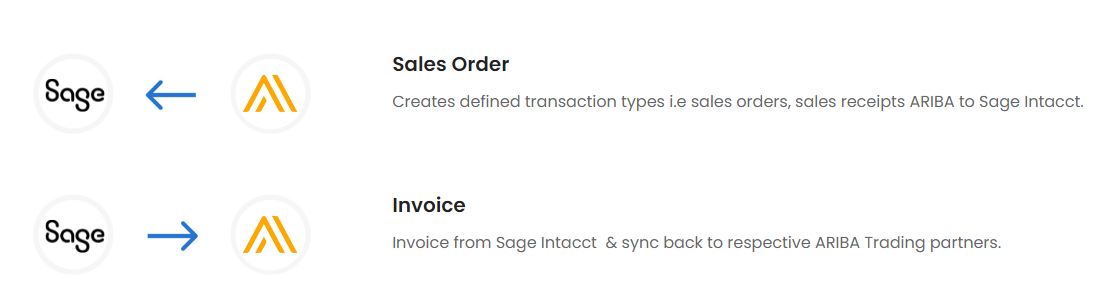 - Invoice from Sage Intacct & sync back to respective Ariba Trading partners.