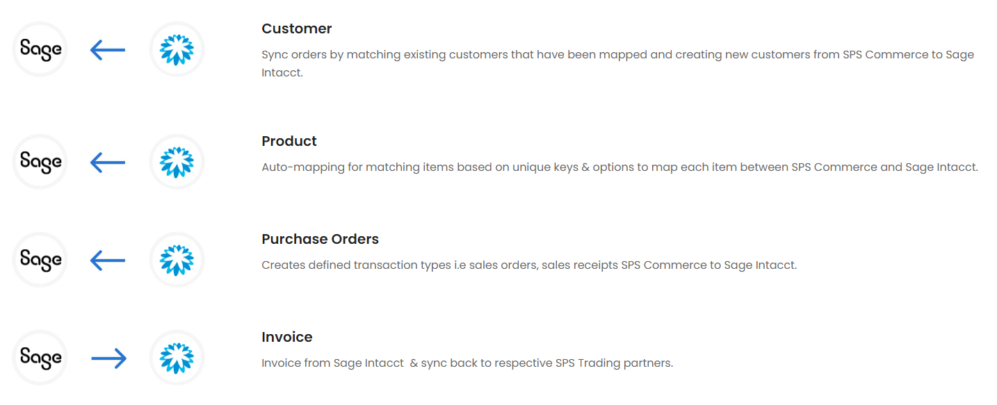 - Easily sync products, customer inventory levels, shipment and price back and forth between Sage Intacct and EDI Handler.