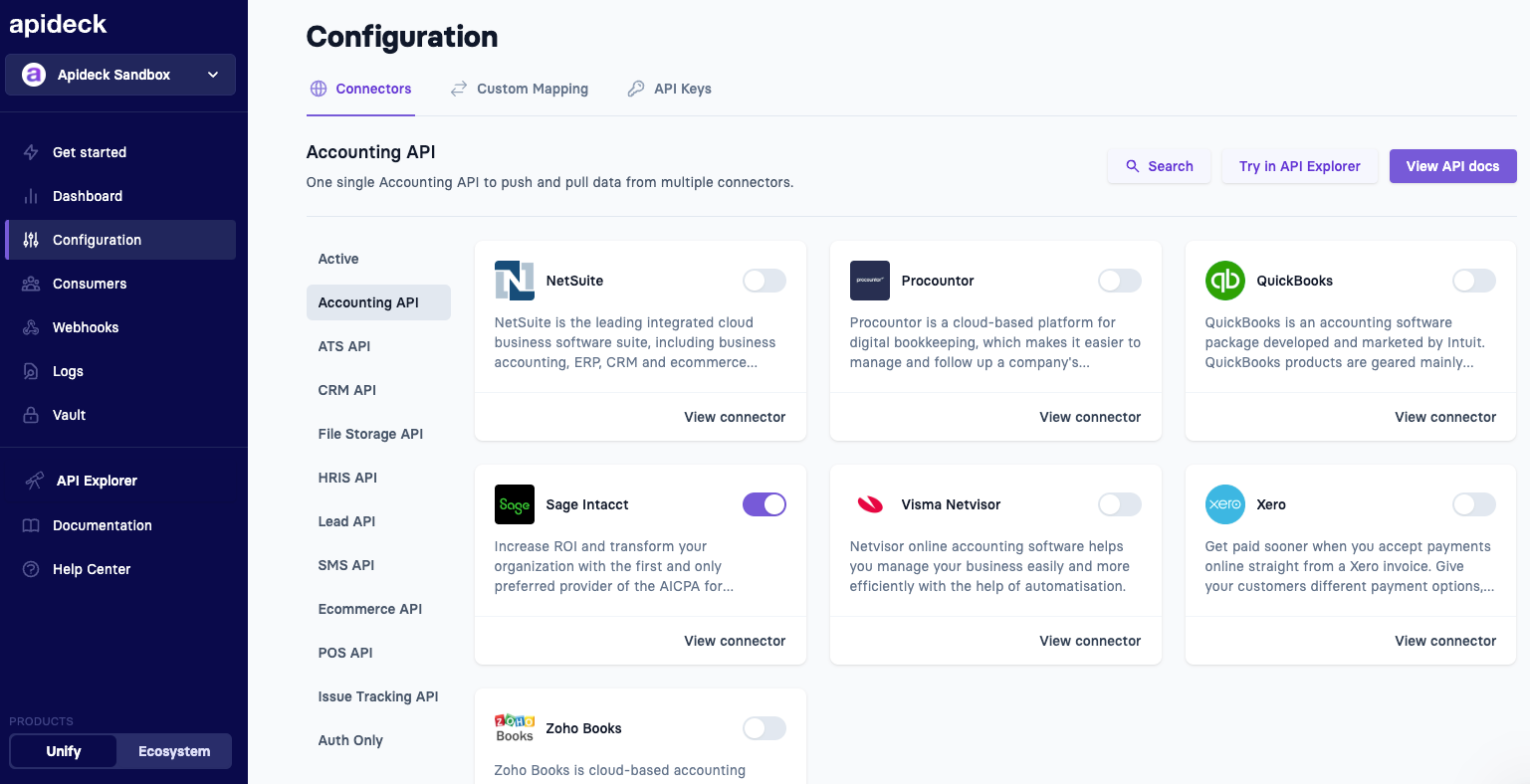 Using the Apideck Unified Accounting API, customers can integrate directly with Sage Intacct and several other accounting applications. This allows you to speed up go to market, while drastically reducing maintenance costs.