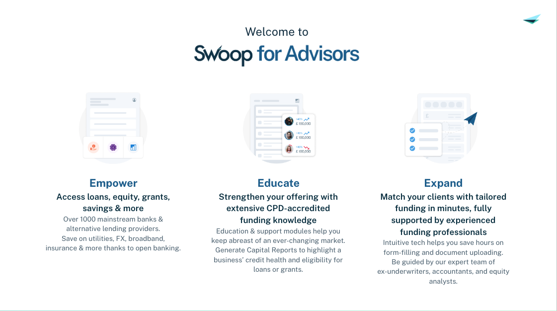 With Swoop you will have access to unsecured funding, business property finance, corporate finance, equity investment, grants, business savings & more!