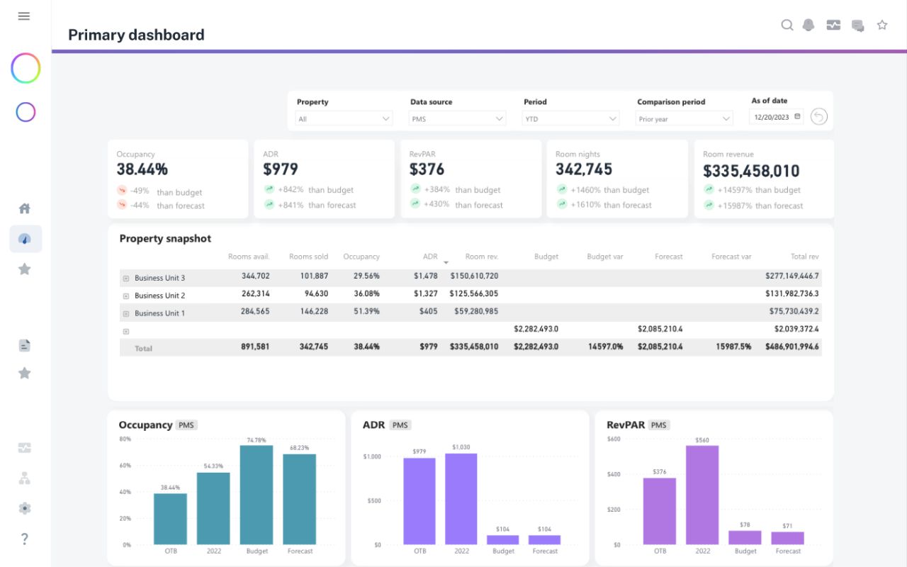 Centralize data across your hospitality enterprise and rely on automated reports and dynamic visualizations to help you run a smarter hospitality business. Otelier IntelliSight automates data collection from various sources across your portfolio and properties. Give stakeholders the real-time analytics they need to make informed decisions that drive revenue and profitability.