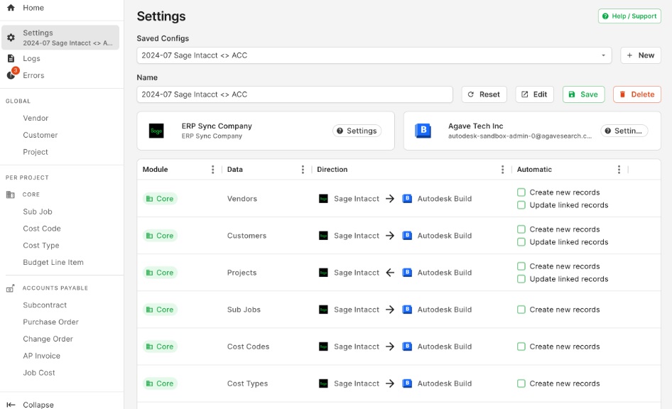 Autodesk Construction Cloud + Agave Sage Intacct Construction Connector: