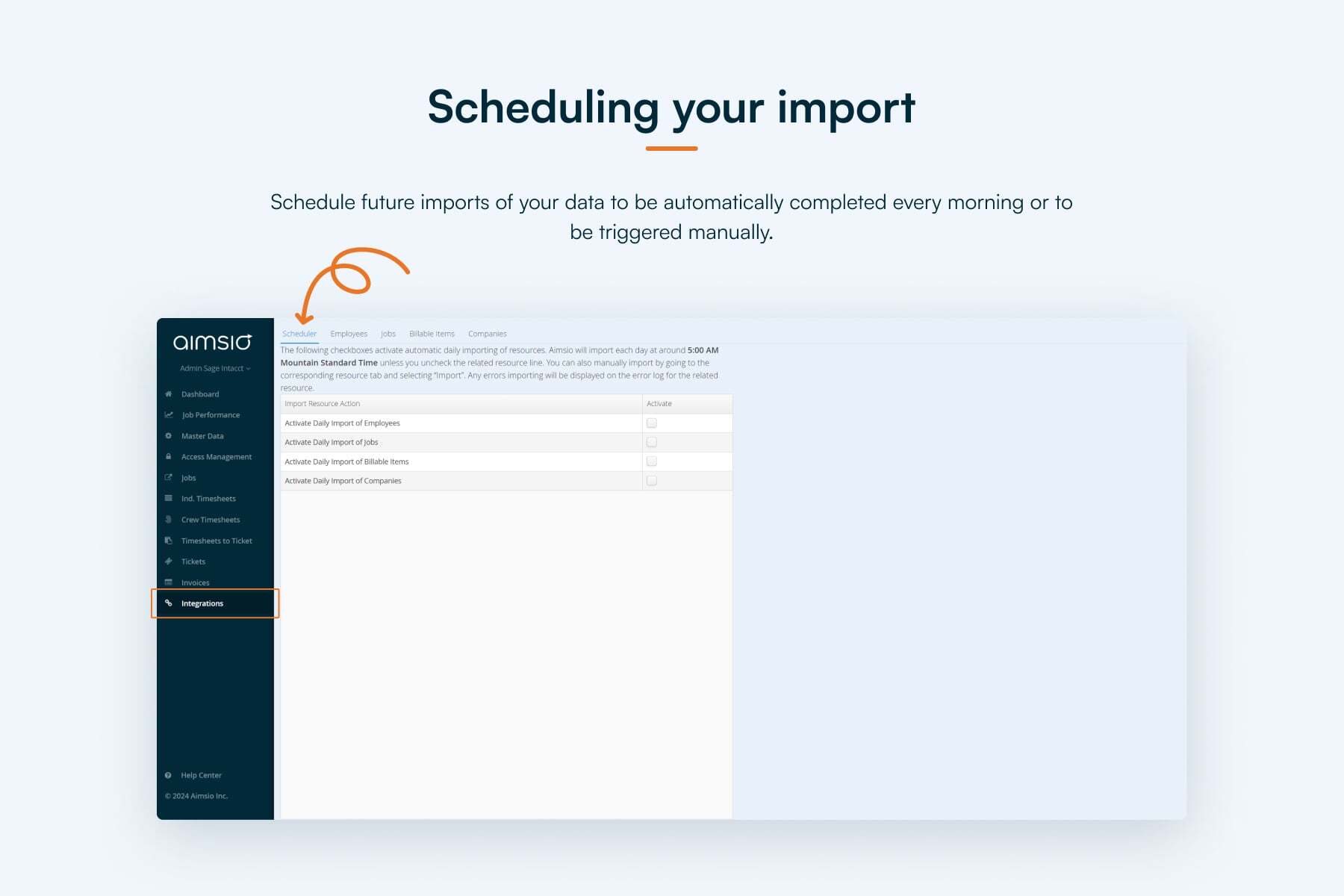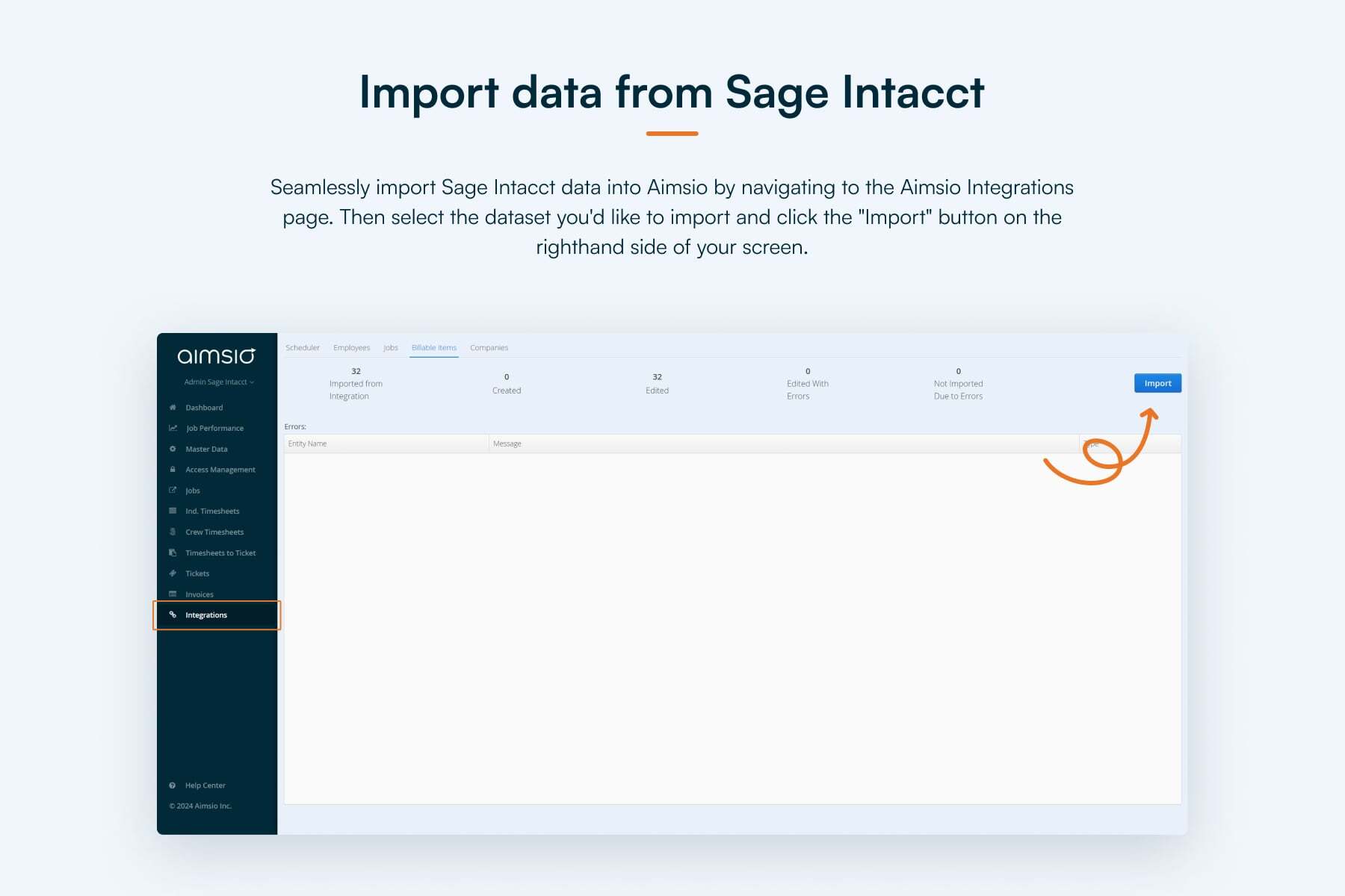 Connect your Aimsio and Sage Intacct accounts