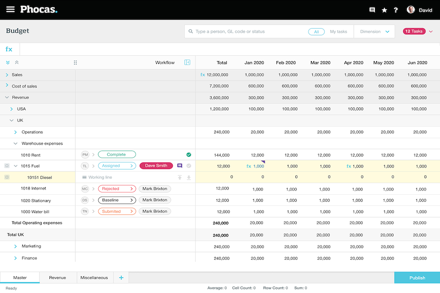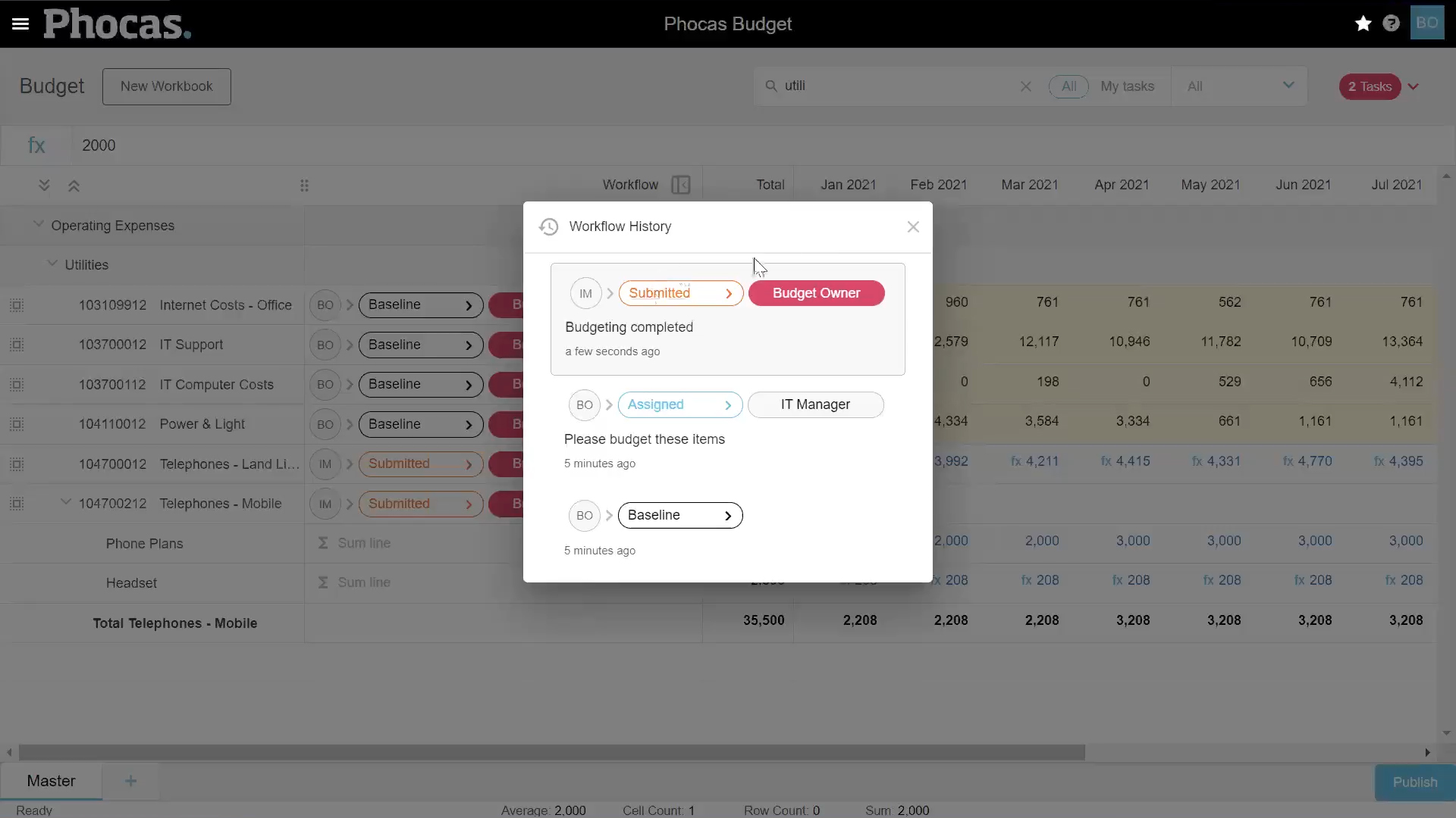 • Budget workflows: Automate and streamline budget collaboration with assignment submission and approval process for each account code line.