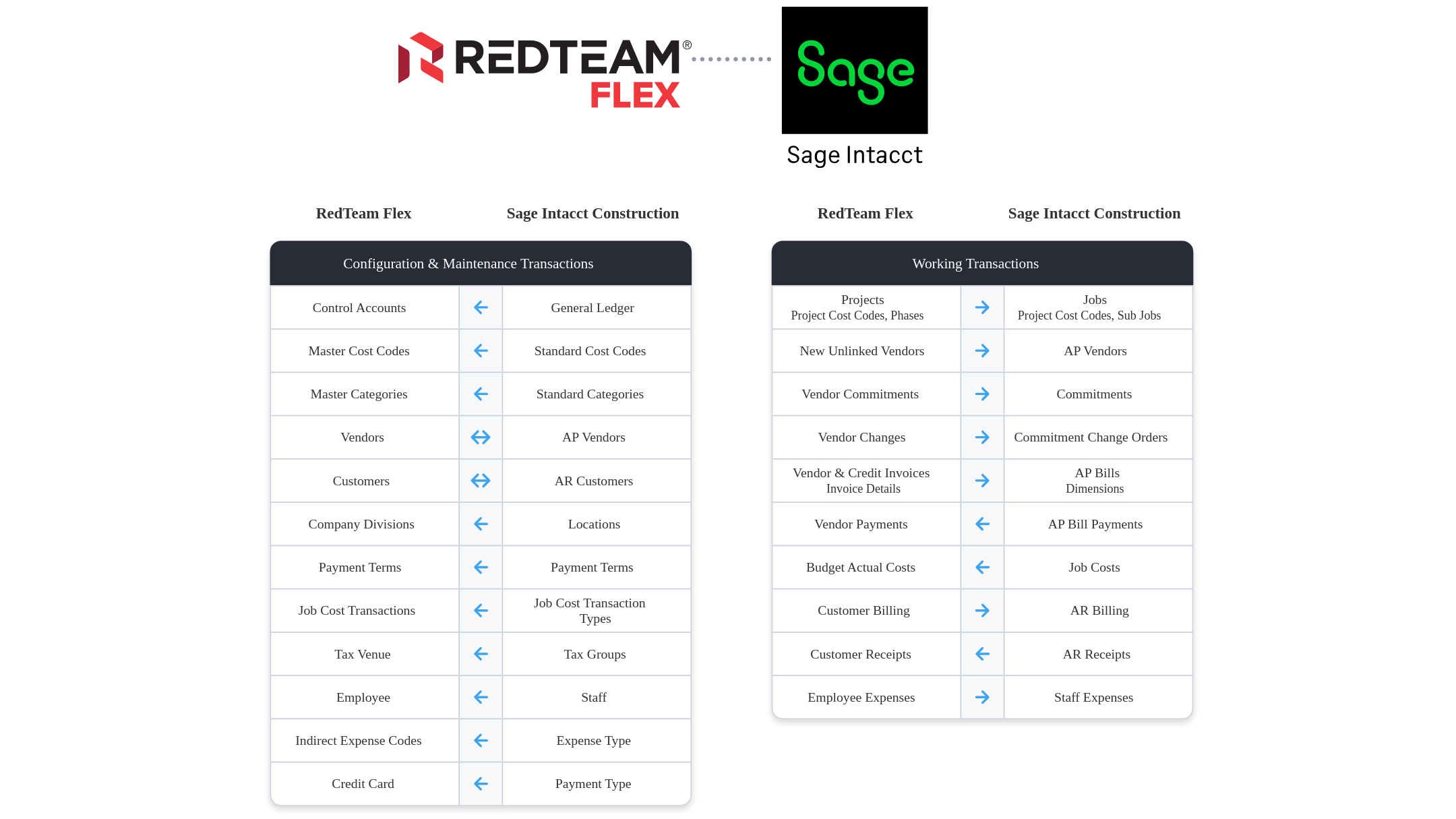 RedTeam Flex is a construction management solution for Sage Intacct integrations used by commercial general contractors and streamlines the conversion from other Sage construction accounting software such as Sage 100 and Sage 300 CRE.