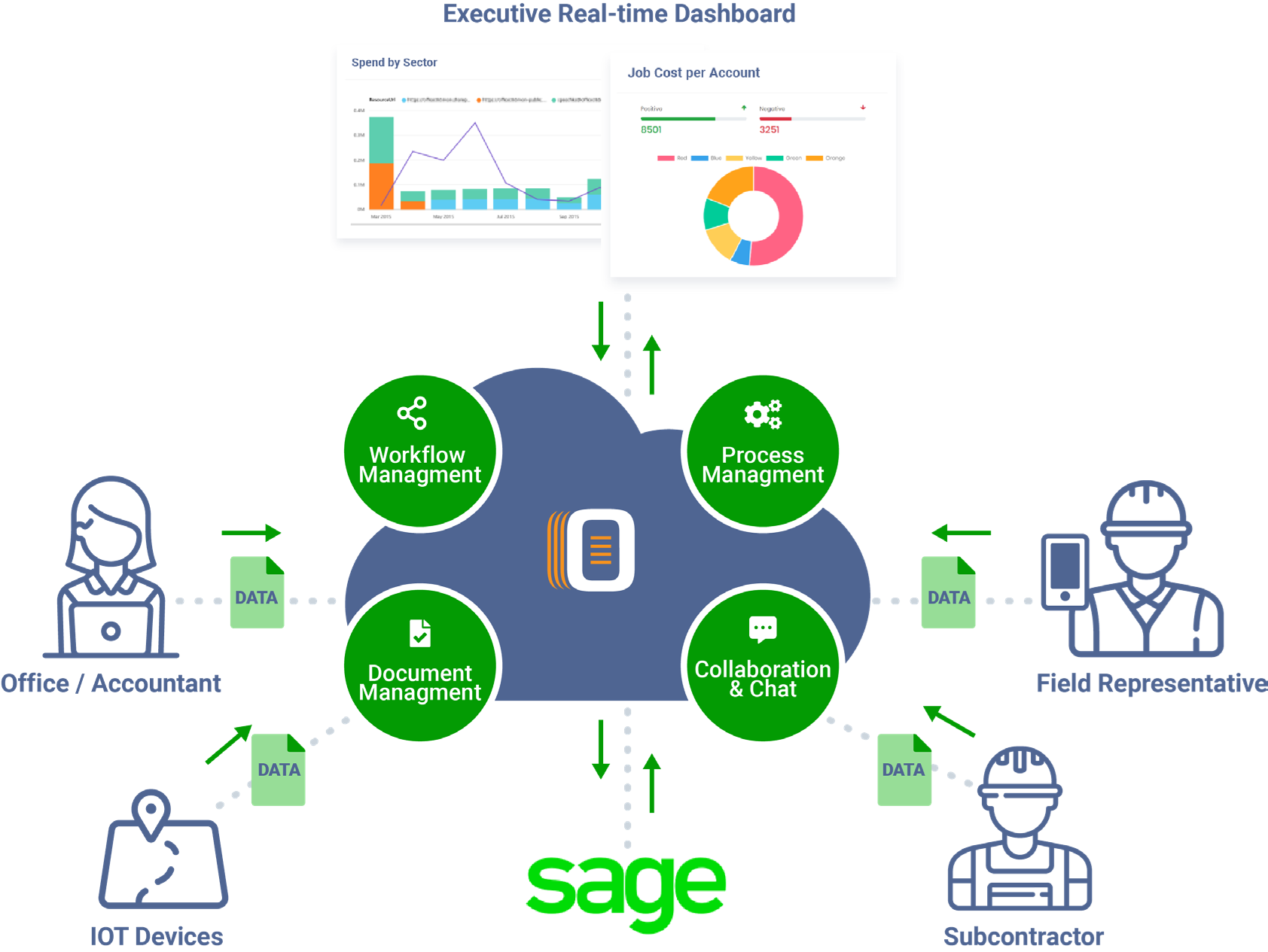 Omnidek offers a dream environment for businesses to create their very own private portal environment where they can privately chat about actual business workflows and participate in real-time with their Rolodex of customers, vendors, and business contacts. Unlike email, Omnidek is not governed by generations-old choke points of file attachments and email. Omnidek’s back end is integrated Smart Data allowing for granular visibility, collaboration, and sharing of business data in your private network portal. The impact of this re-imagined business ecosystem is the elimination of the entire idea of administrative functions inside a business. Omnidek for Sage