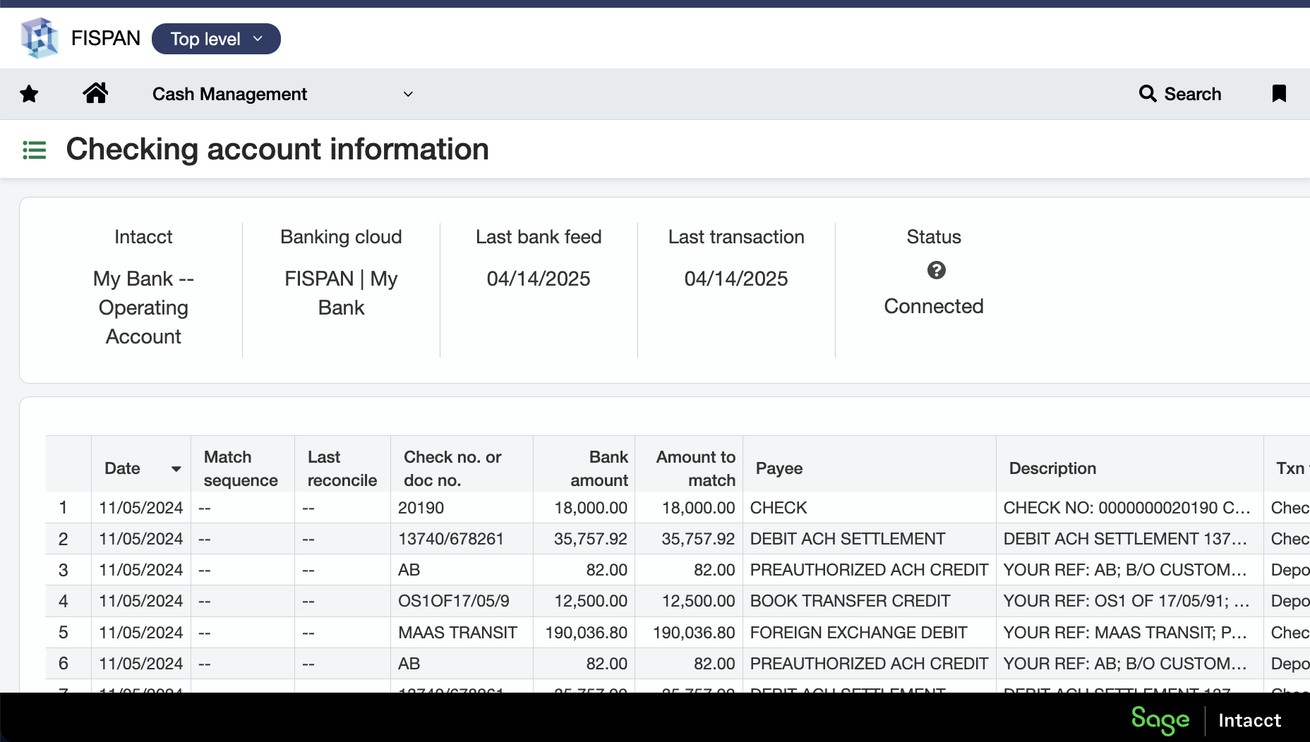 Transform your bank reconciliation process with FISPAN's bank feeds for Sage Intacct.