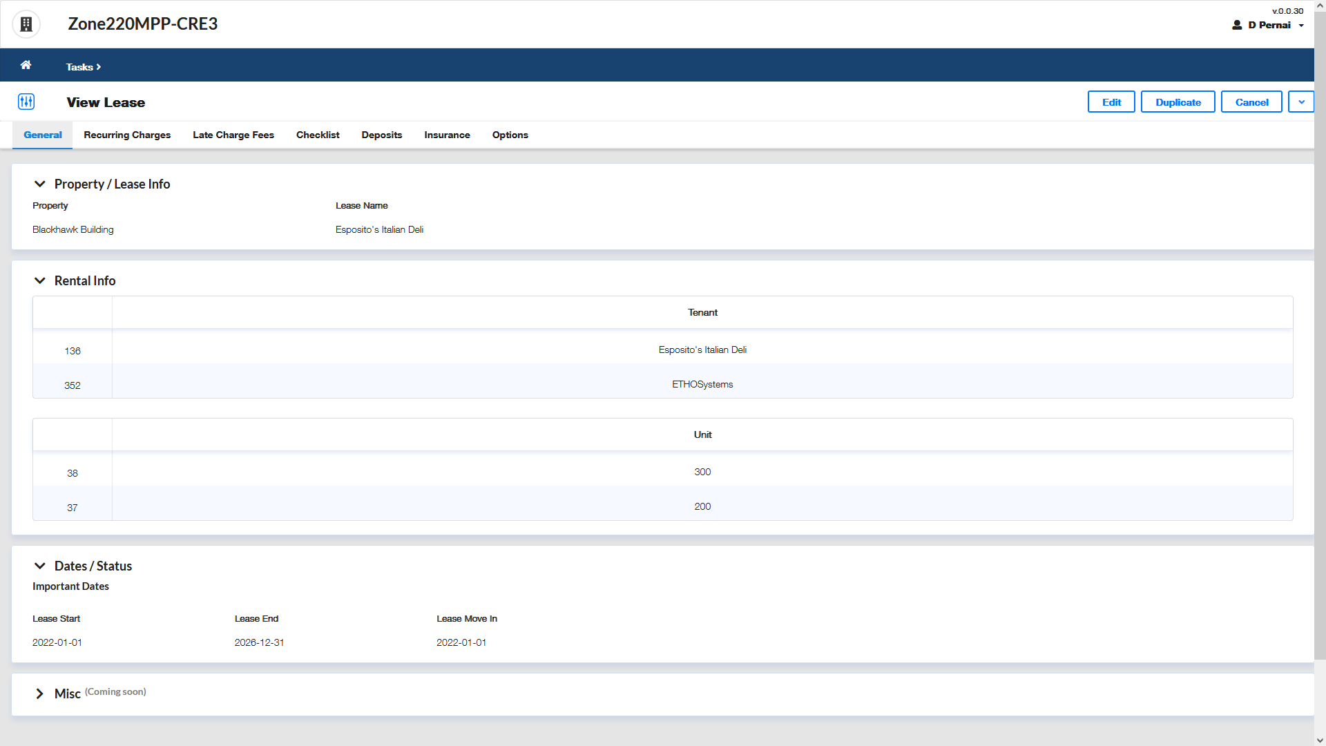 Real Estate also tracks other business-critical details such as property taxes paid, property valuations, tax exemptions, and pertinent insurance information on a property and lease.
