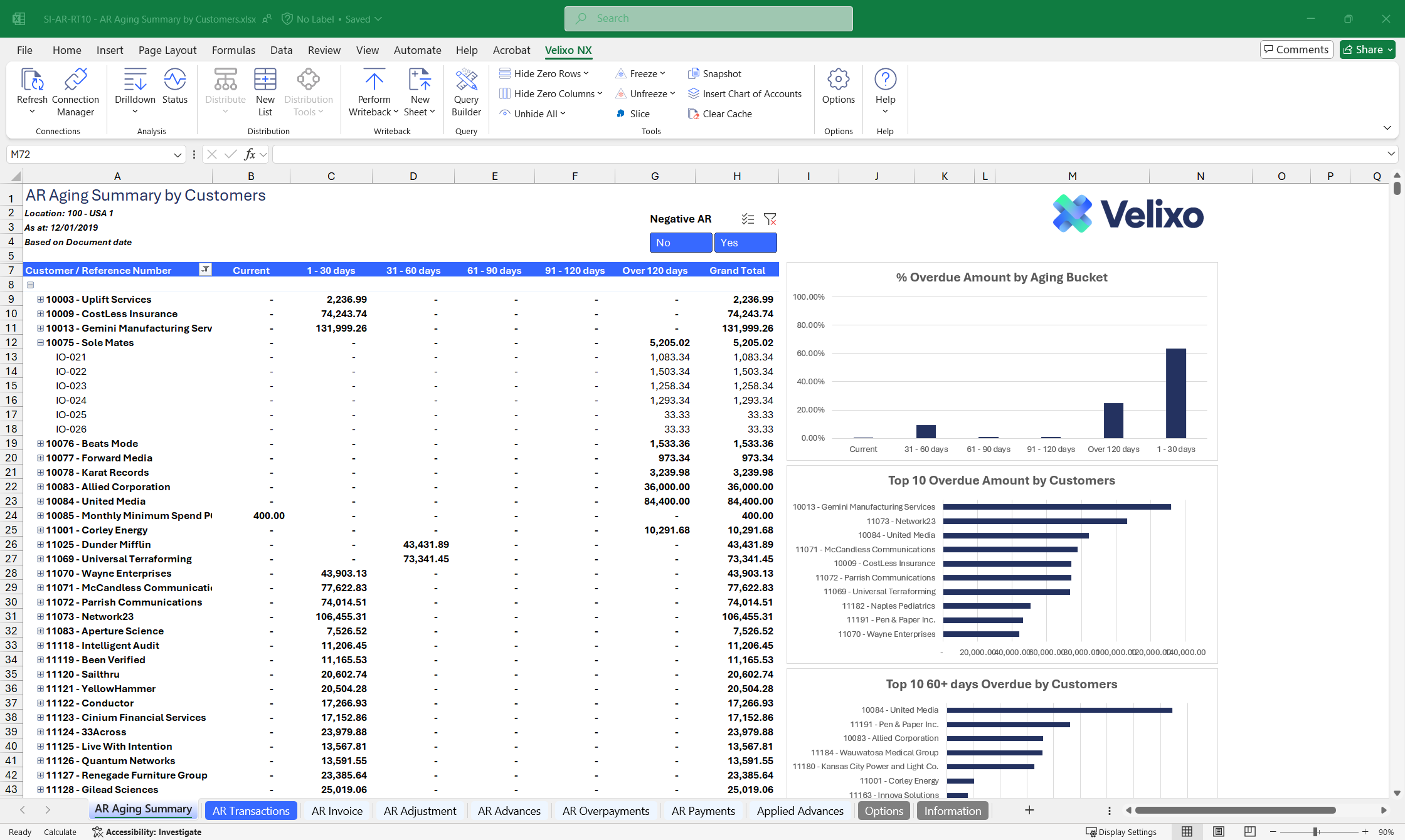 API-based data extraction with no data warehouse, Velixo offers a completely live experience letting users instantly refresh their data, drill down to transactions and leverage AI insights from within Excel.