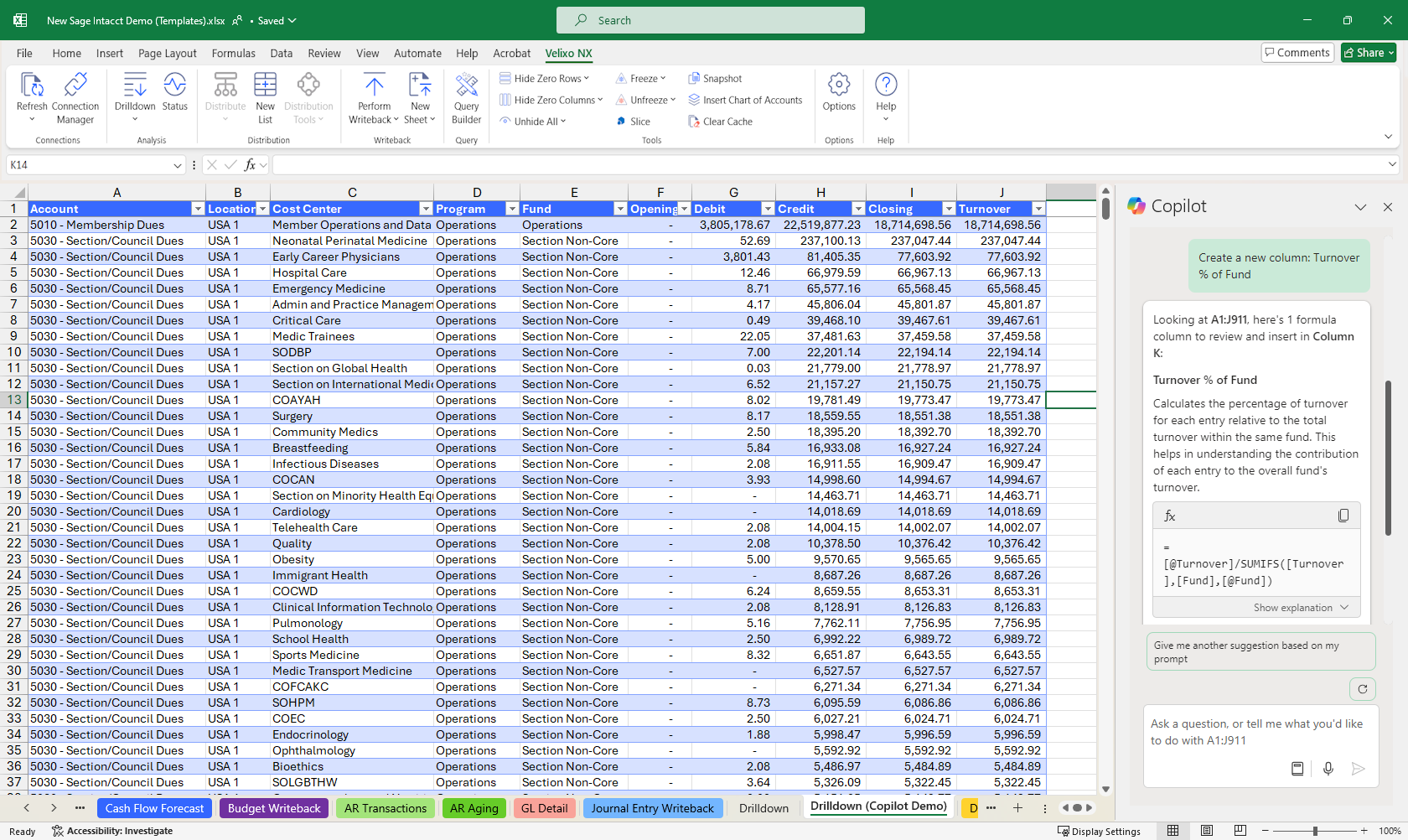 In addition to extracting real-time data for reporting purposes, Velixo lets users create or update any Sage Intacct data, in bulk and in real-time. With Velixo, you can automate the creation of General Ledger Journal entries, Budget entries, Project Estimates or any Object of the Sage Intacct platform using specially made Writeback functions. Scenarios include creating monthly adjustment journals, allocating budget entries by time or dimension, importing data, allocating data to dimensions, automating data entry, or fixing data quality issues.