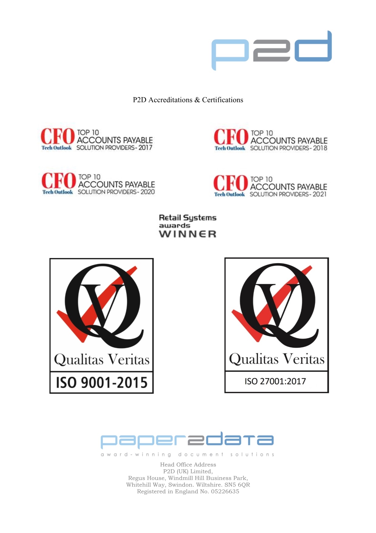 Consistently ranked as one of the world’s top 10 providers of Purchase Ledger automation solutions, P2D is a unique business process company specializing in services that turn ‘paper to data’.