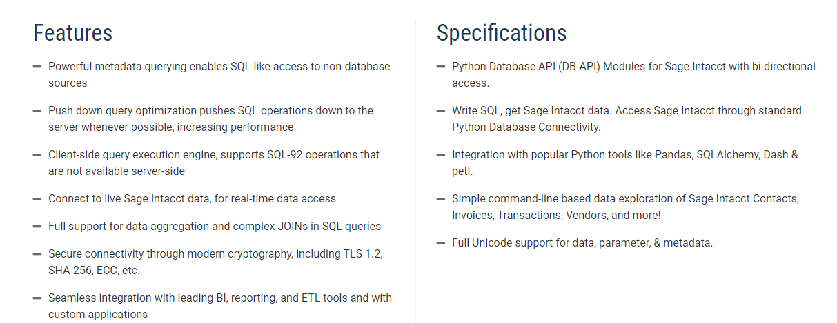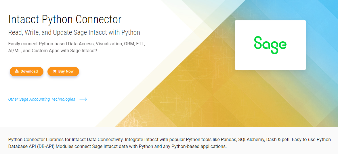 Connect Python-based Data Access, Visualization, ORM, ETL, AI/ML, and Custom Apps with Sage Intacct.
