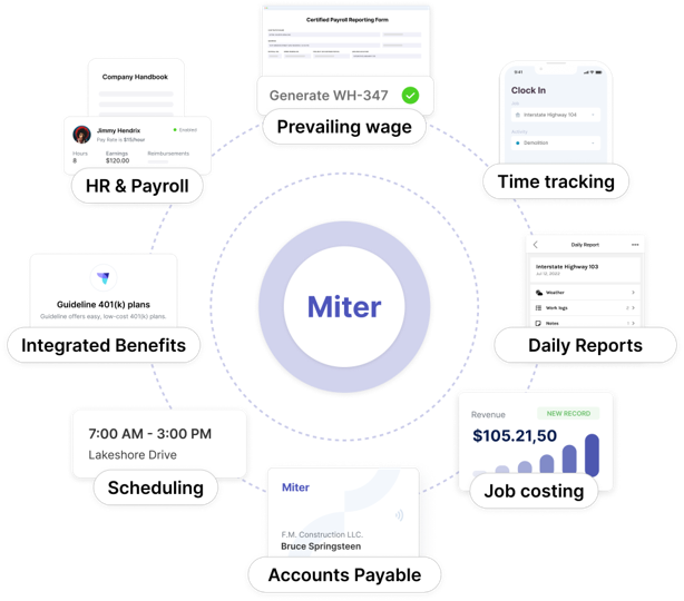 Miter is the modern construction HCM. Contractors of all sizes use Miter to simplify HR, payroll, time-tracking, compliance, and more.