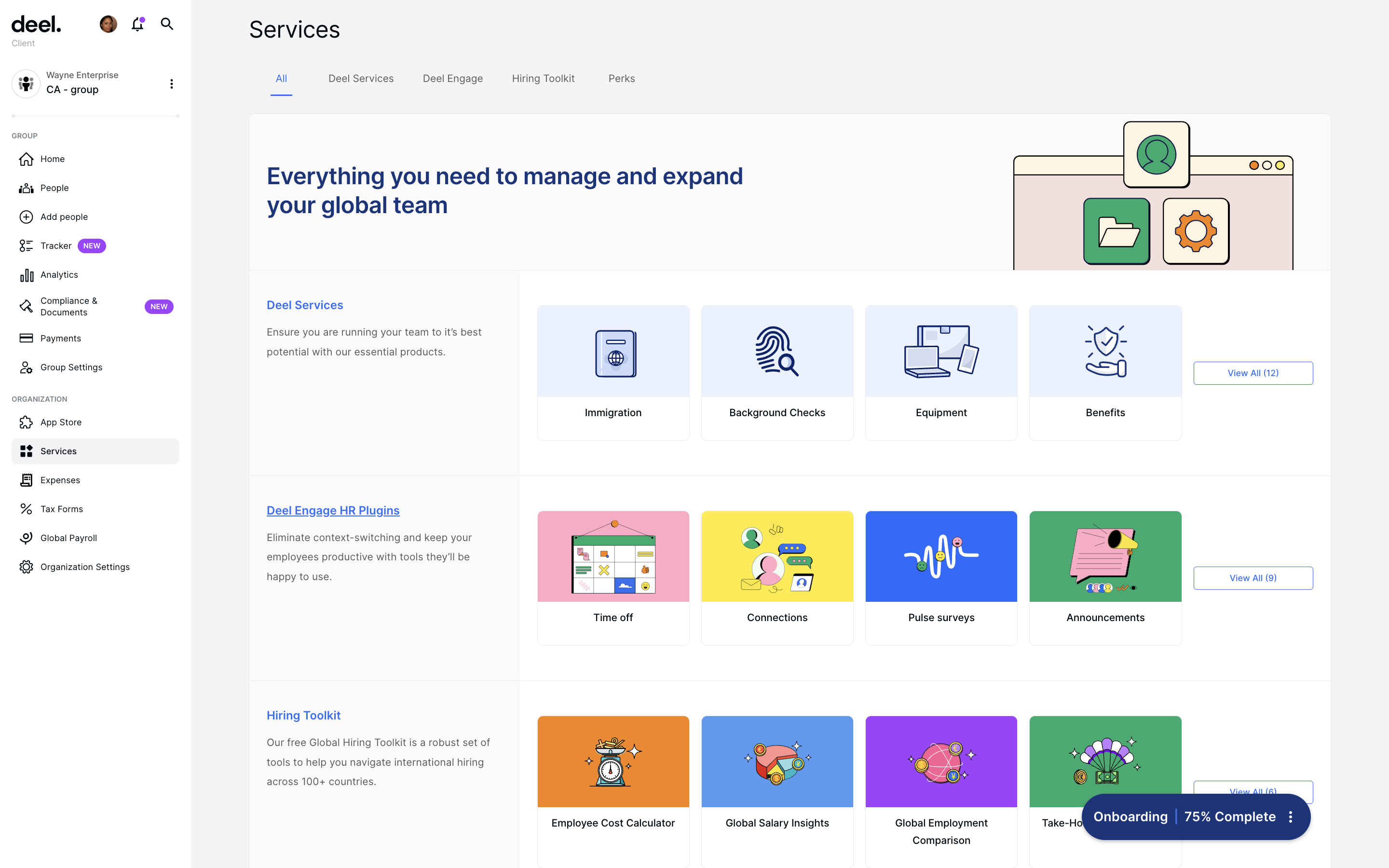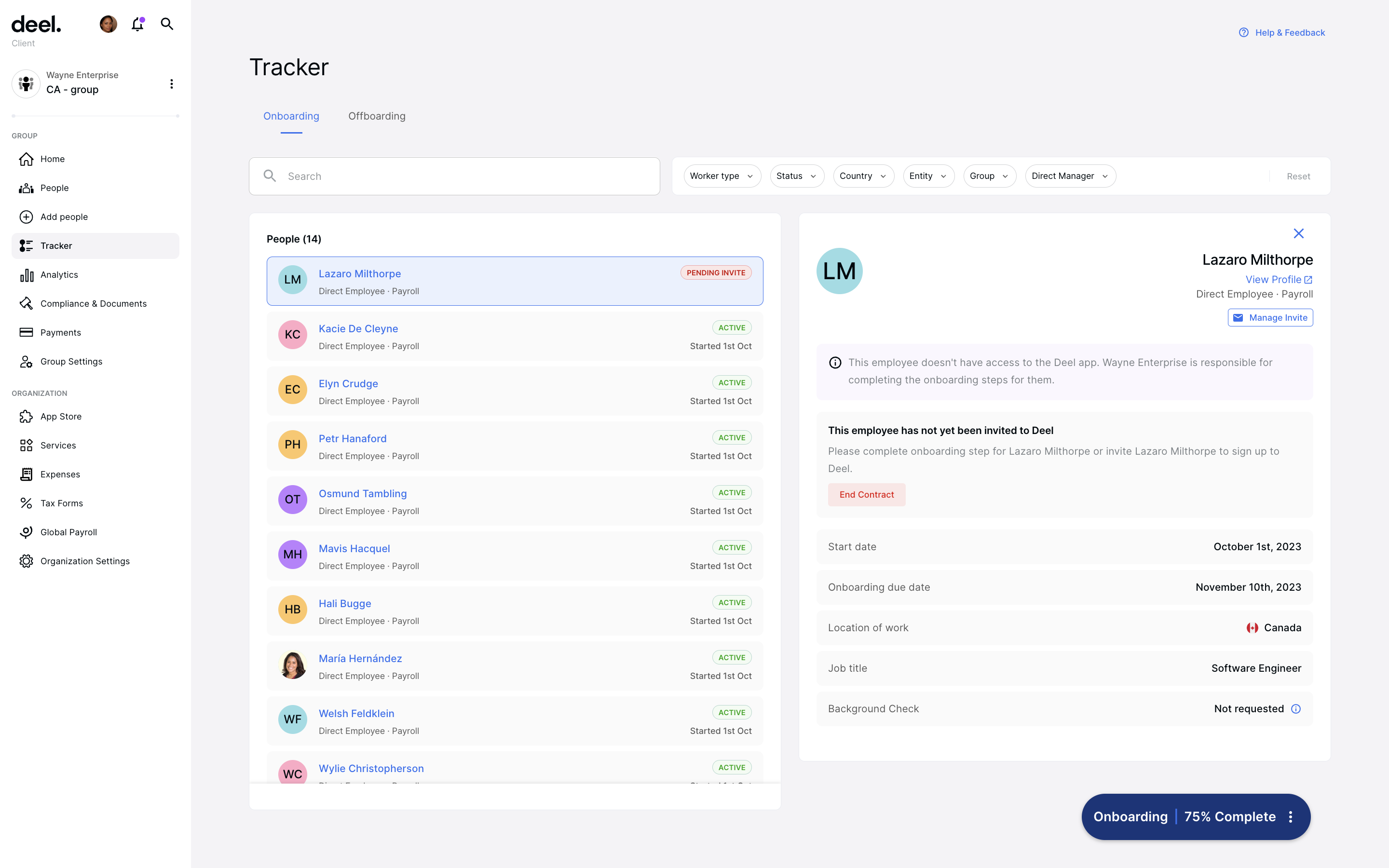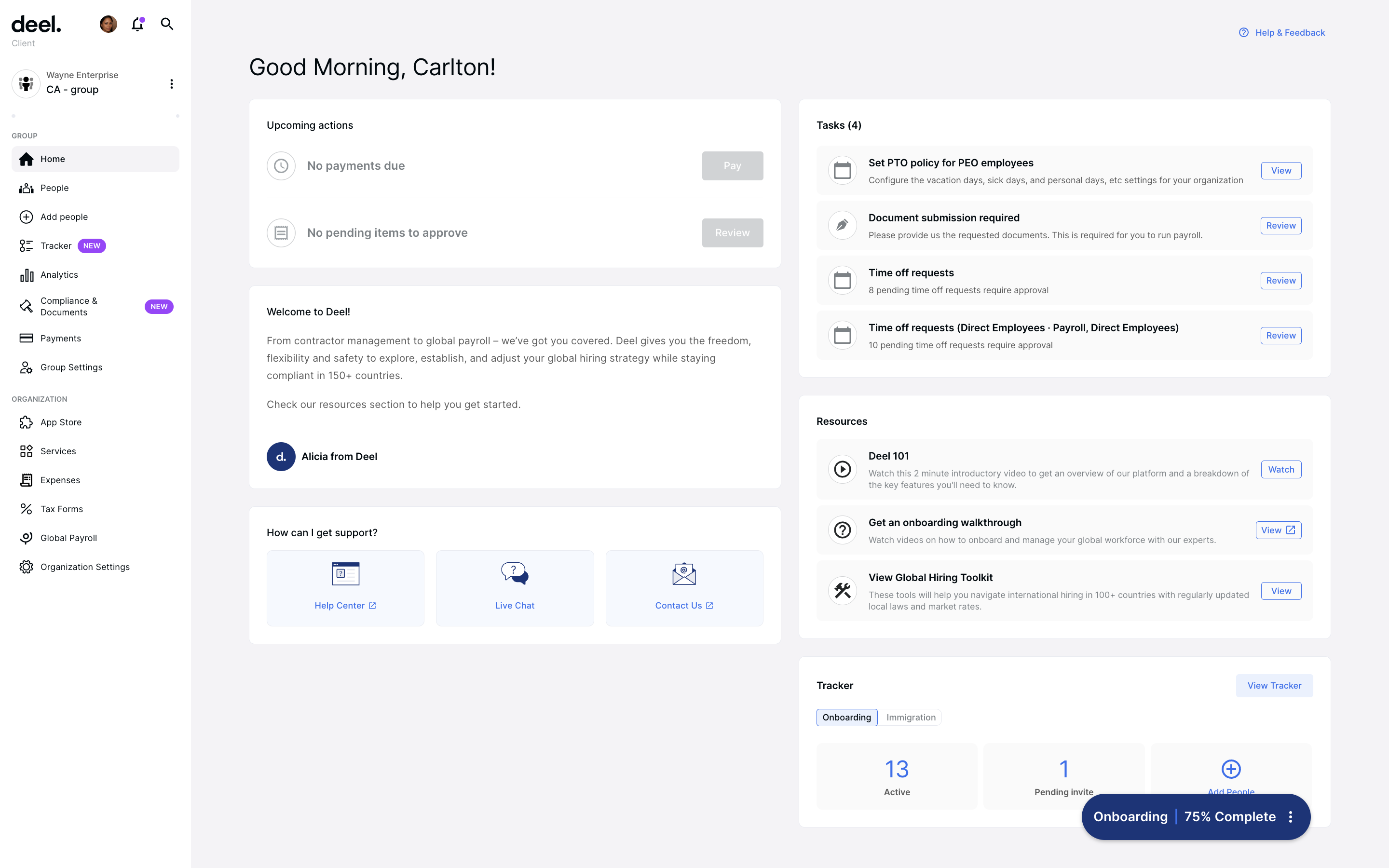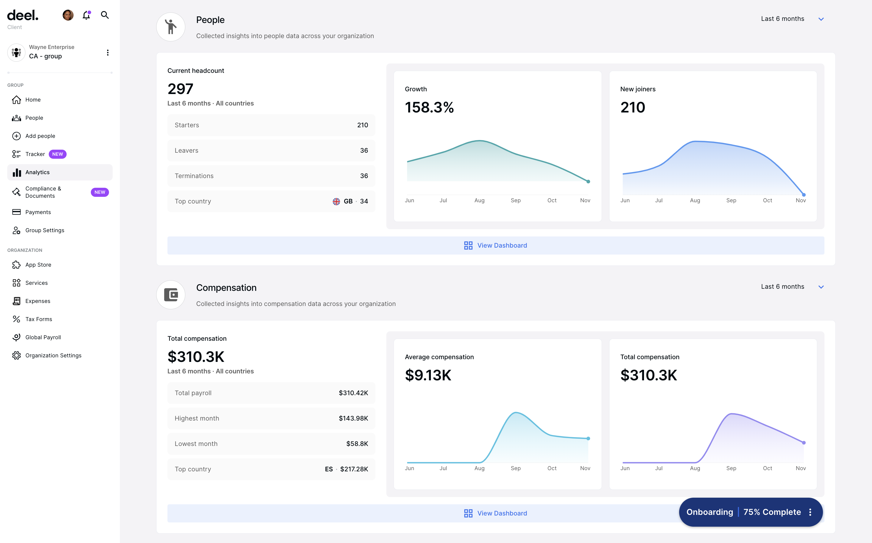 We'll handle your global compliance, payroll, and HR so you can focus on global expansion. You'll see everything on one powerful, easy-to-navigate dashboard.