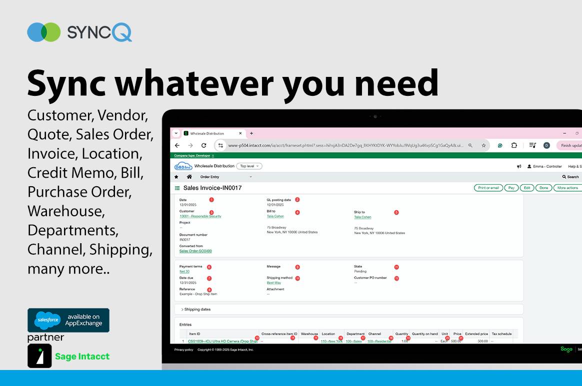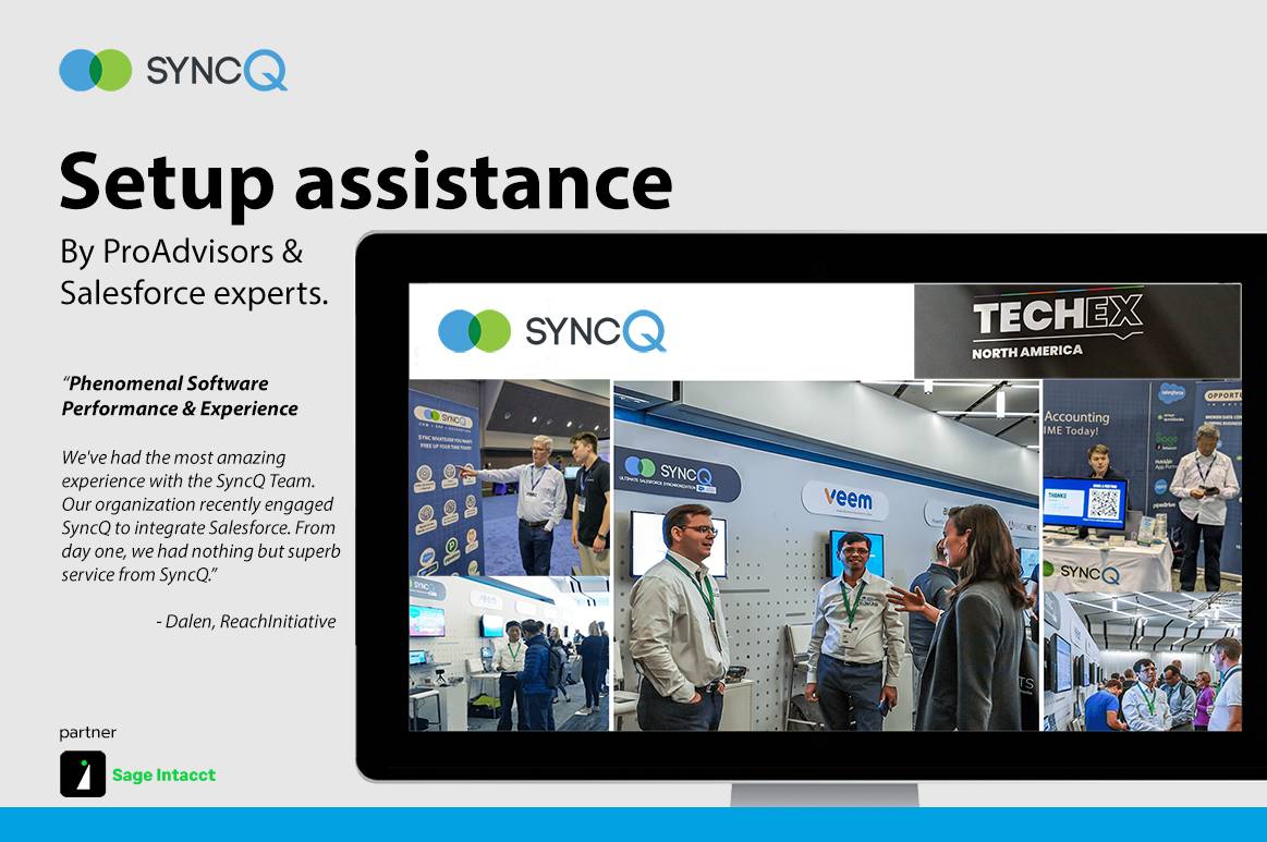 For step-by-step setup instructions, please visit our FAQ and help center at help.syncq.net/intacct.salesforce/