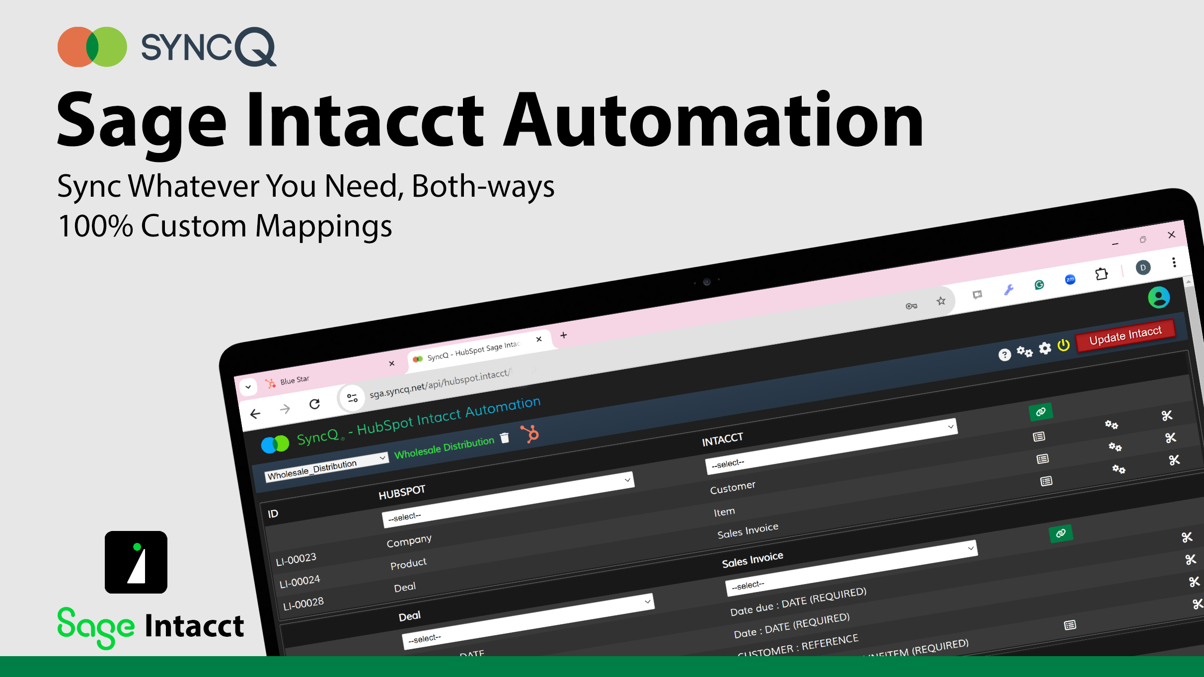 Bi-directional sync between HubSpot and Sage Intacct.