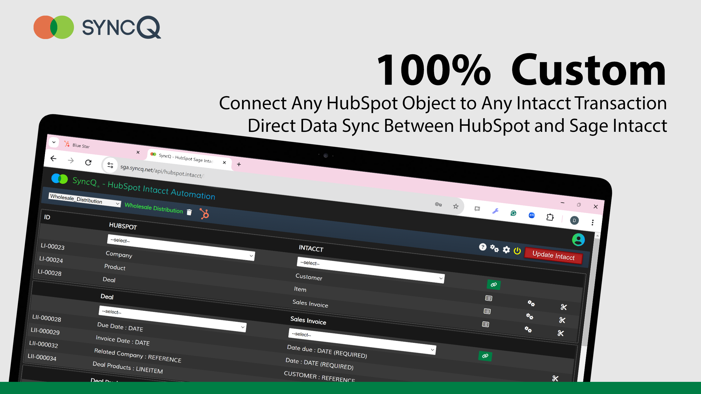 100% Custom & Bi-directional, Seamlessly Sync Any HubSpot Object to Any Sage Intacct Transaction