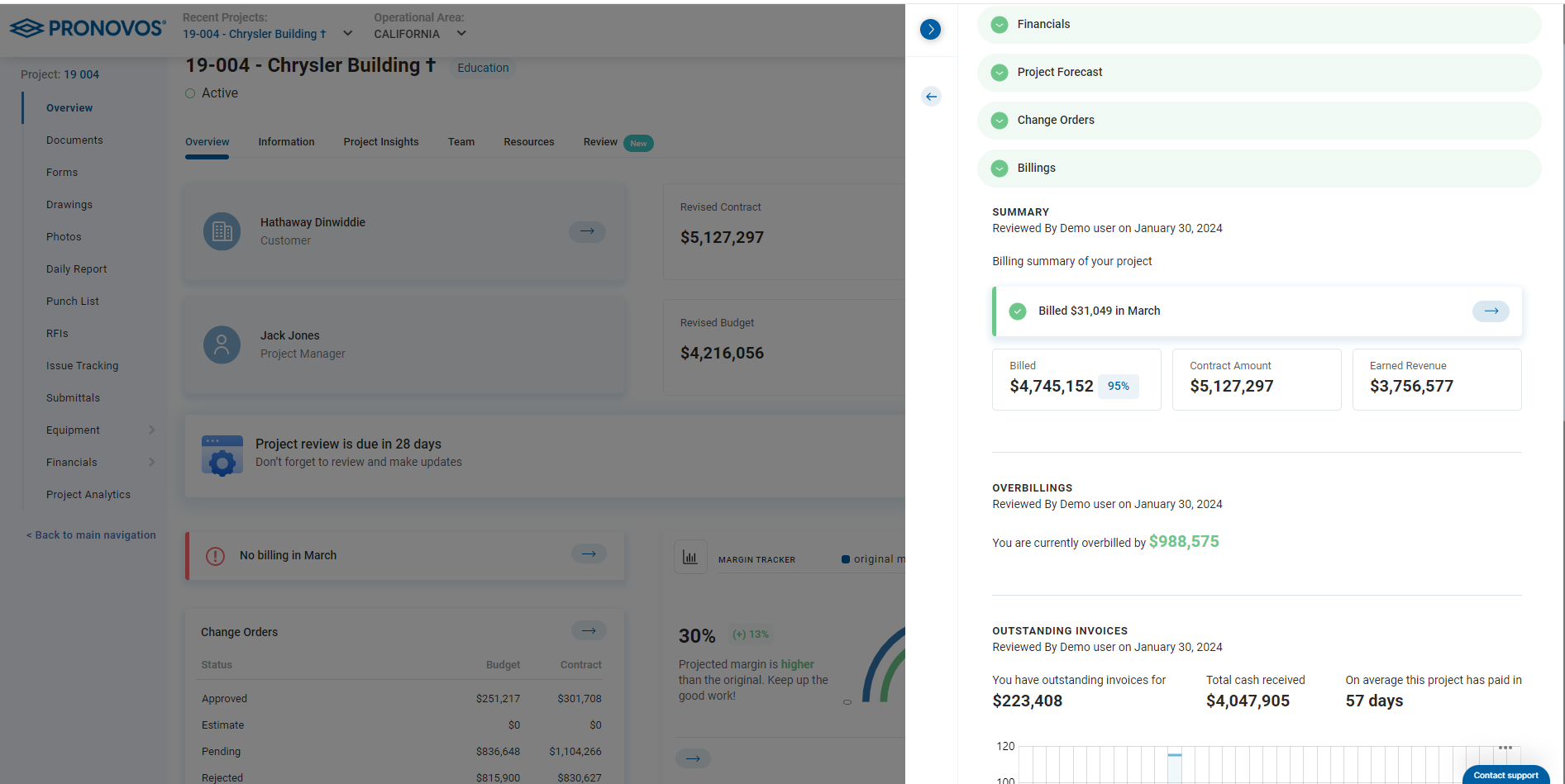 This transformation enables contractors to better understand their finances while safeguarding their profits. Whether through executive dashboards, revenue projections, project reviews, or cash flow forecasting, ProNovos empowers users to make informed decisions and helps leaders fortify and expand their construction businesses.