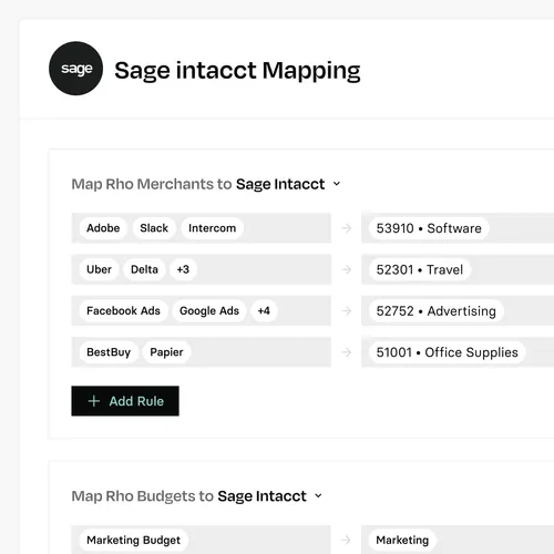 When you integrate Rho with Sage Intacct, you can automatically sync all your banking, corporate card, and vendor payments to your GL. Let Rho do the heavy lifting, so you can focus on higher-impact business activities.