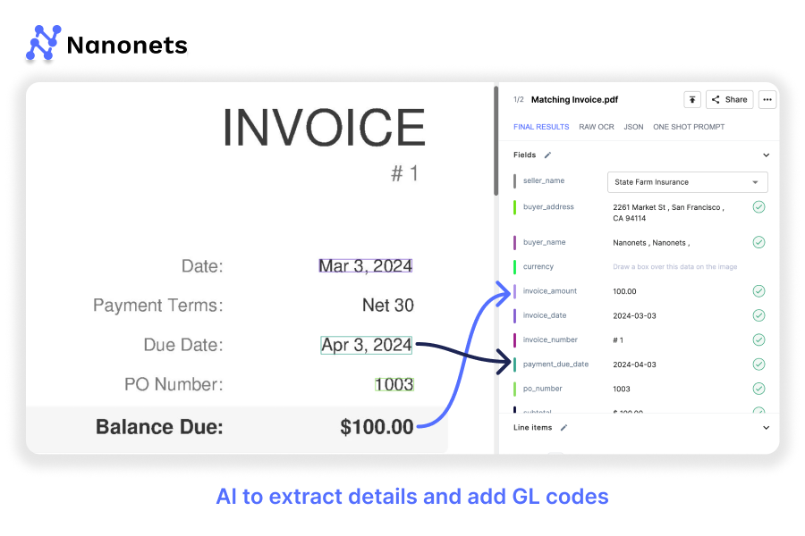 Nanonets capture data accurately from financial documents like invoices, purchase orders, and bank statements, drastically reducing manual input and freeing employees to focus on strategic tasks.