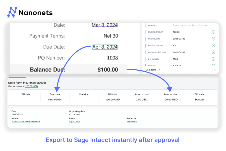 Nanonets' integration with Sage Intacct provides a comprehensive solution for automating accounts payable workflows. Nanonets captures data accurately from various financial documents like invoices, purchase orders, and bank statements, reducing manual data entry by 90%.<br><br>