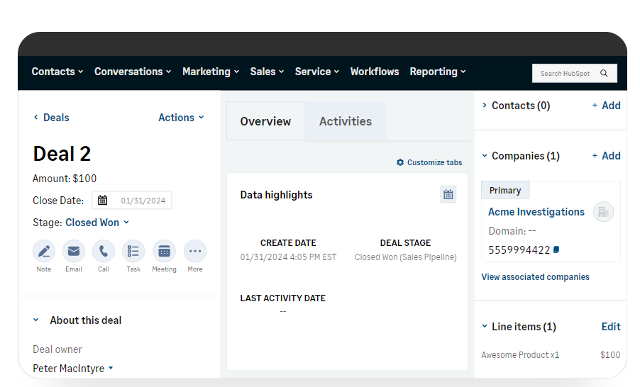 Pre-built integration with HubSpot