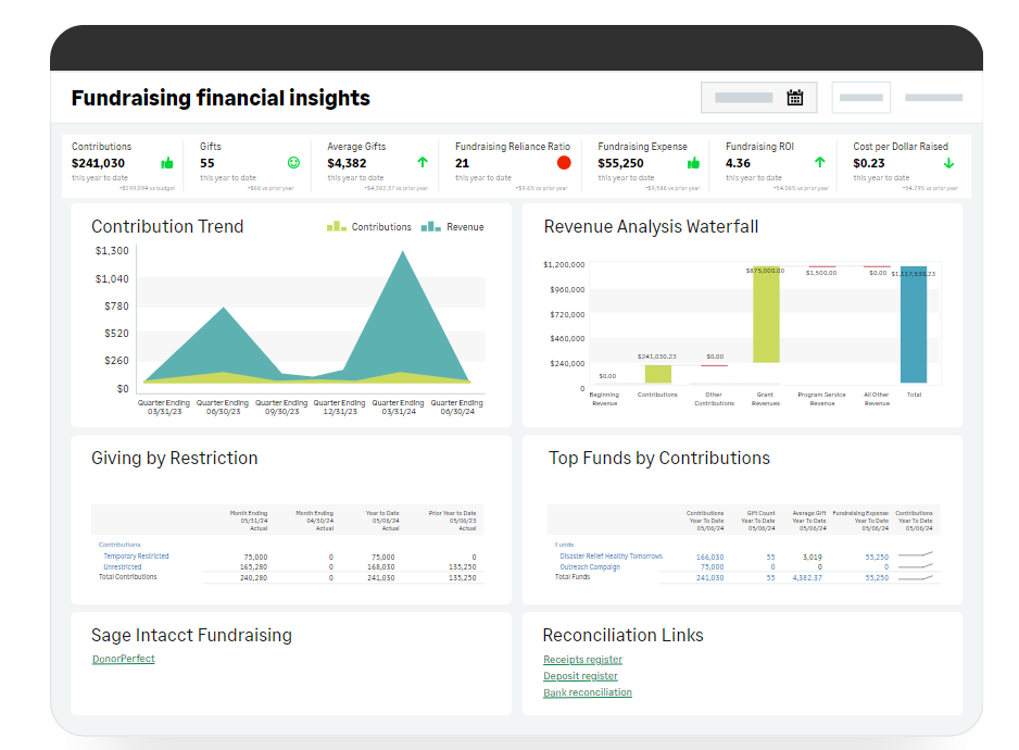 - Flow your fundraising data into your financials in Sage Intacct and get a complete financial picture.