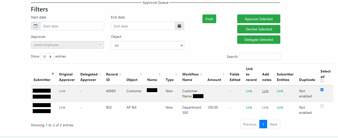 Robust approvals workflow engine on master and transactional data. Includes line level approvals, multi-step configurable approval workflows, vendor/customer duplicate detection, approval delegation and out of office, automated reminders, and more.