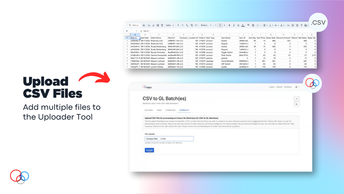 Venn Technology’s CSV Uploader Tool helps accounting & finance teams spend less time manually entering data and more time on what they’re best at.