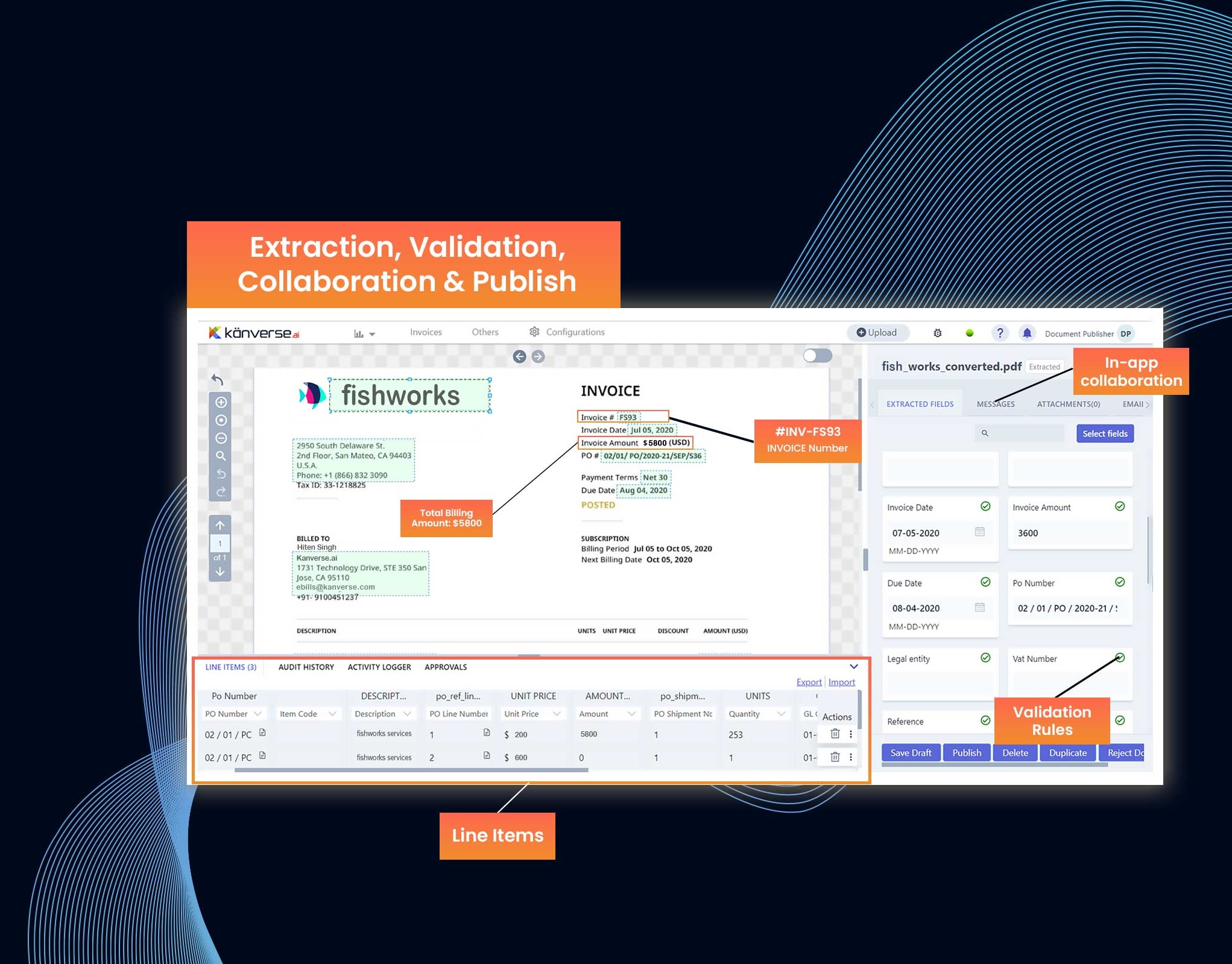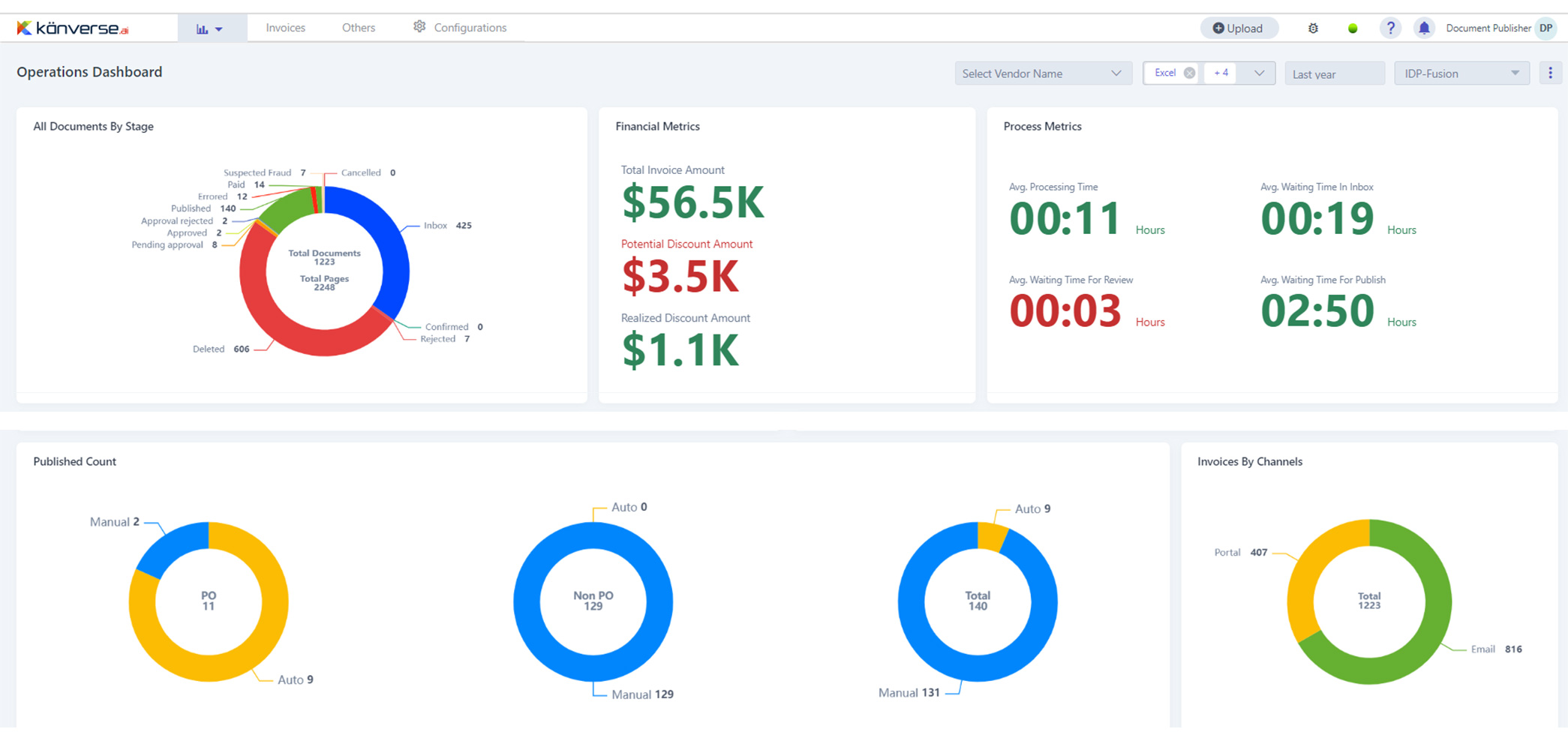Enhance your Sage Intacct experience with Kanverse Account Payable Invoice Automation (APIA). Our AI powered Automation solution has a comprehensive AP Suite for all your needs, from vendor onboarding to invoice processing, PO matching, enhanced approvals, and vendor payments. Kanverse IDP reduces document processing cycle time from days and hours to seconds, optimizes operations cost by up to 80%, prevents fraud, eliminates manual entry to deliver a zero-touch experience with up to 99.5% processing accuracy.