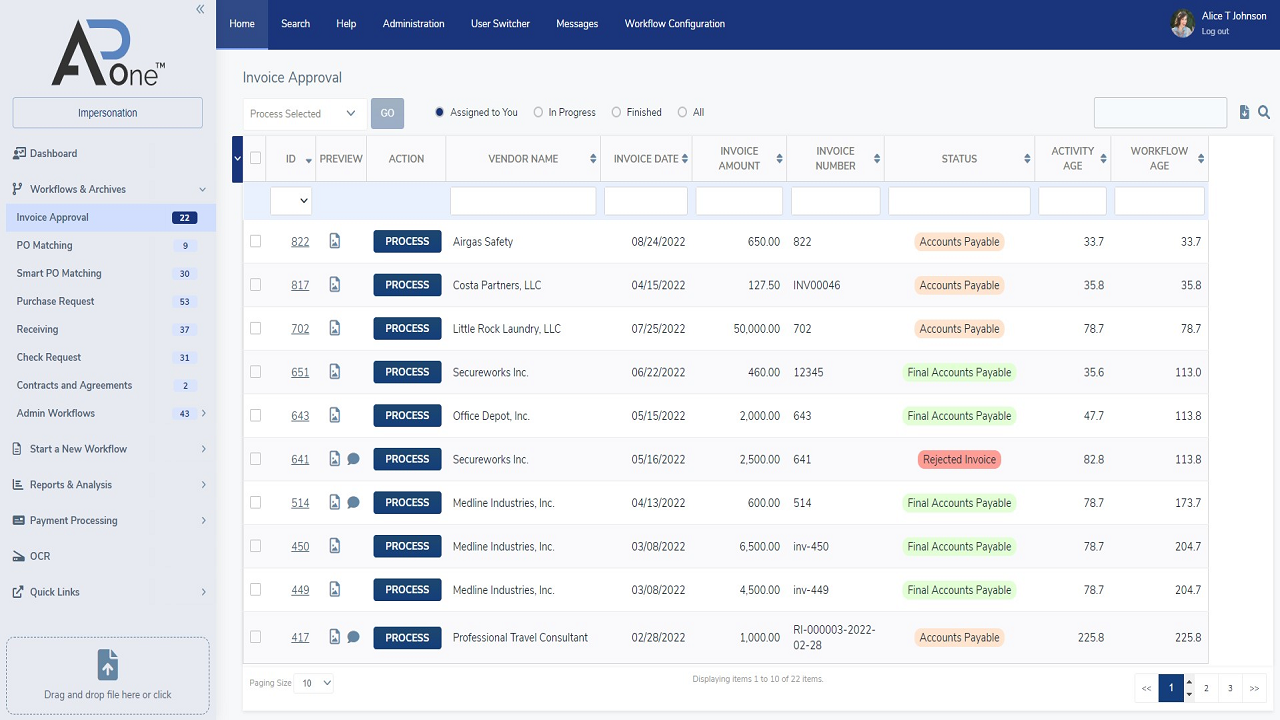 • Scalable for Growth: Designed to grow with your business, A/P One supports high invoice volumes without sacrificing performance or user experience.