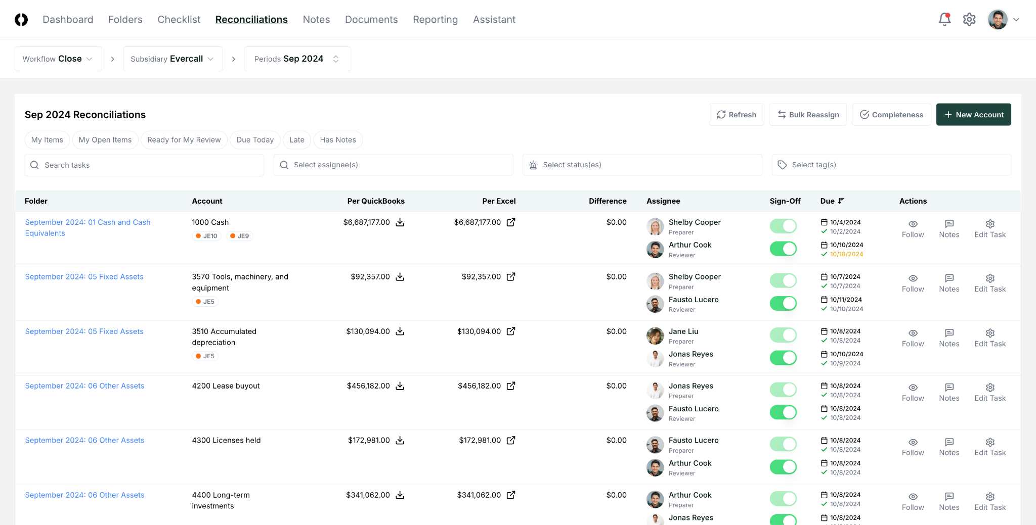 The CloseCore platform organizes your month-end close checklist, reconciliations and variance analysis with reconciliation automation, accuracy checks, and complete visibility into close progress.
