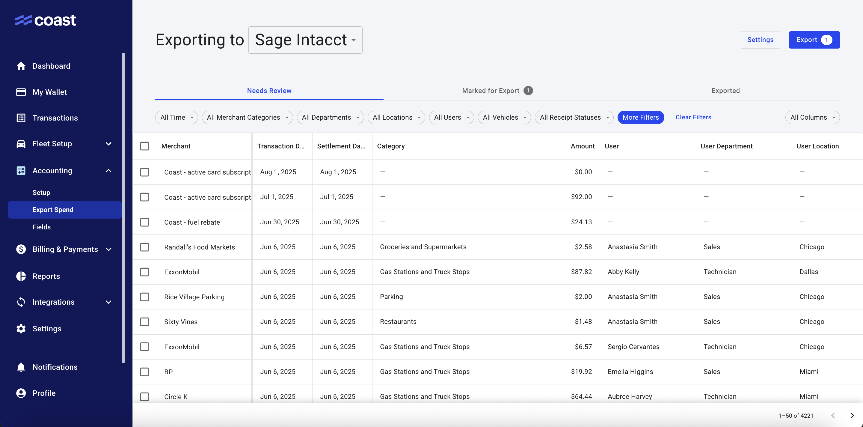 Effortlessly sync your Coast credit card transactions with Sage Intacct.