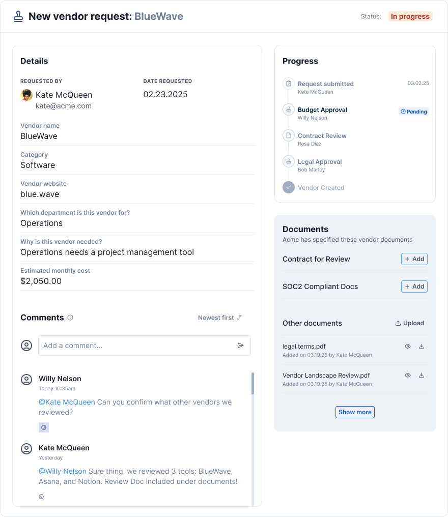 And with built-in Requests & Approvals, nothing gets added without a green light.